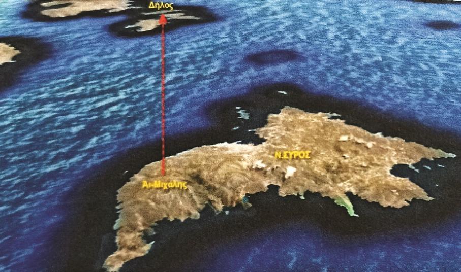 Από Γερούσι, κι από το οποίο φαίνεται ο Ήλιος να ανατέλλει από τη Δήλο, προέκυψε ο παρακάτω χάρτης. Επάνω και μέσα στον κύκλο βρίσκονται συνολικά δώδεκα νησιά, όσα υπολογίζονταν στην αρχαιότητα οι Κυκλάδες. Προκύπτει δηλαδή, ότι ονόμαζαν τα νησιά Κυκλάδες, όχι επειδή ήταν σε κύκλο γύρω από τη νήσο Δήλο, αλλά γύρω από την Σύρο και συγκεκριμένα από το λόφο της Άνω Σύρου, που, πριν κατοικηθεί, ονομαζόταν Μεσοβούνι.