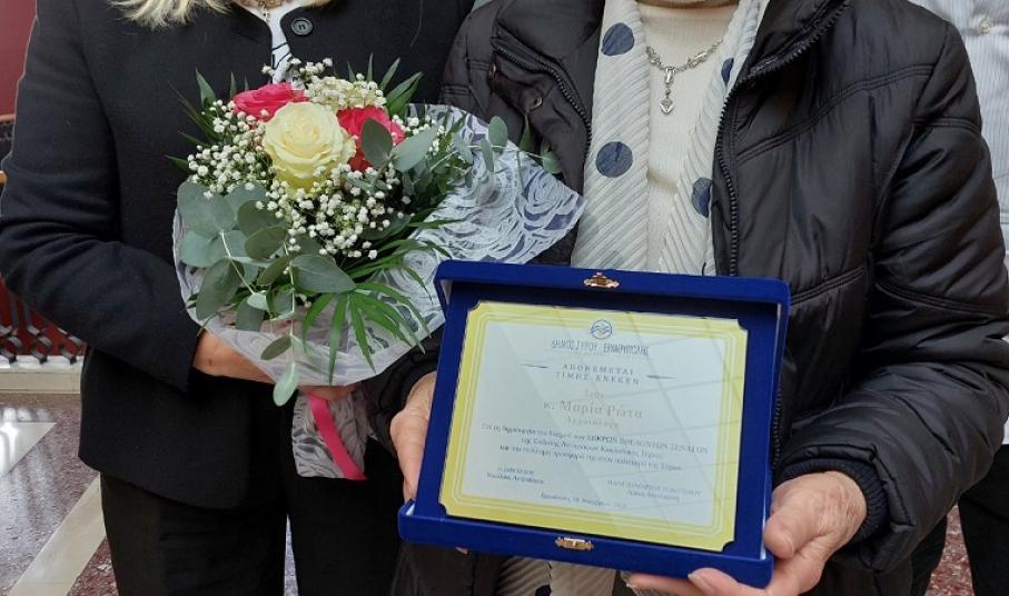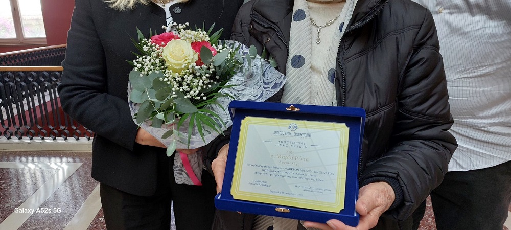 Με ιδιαίτερη συγκίνηση αποδέχτηκα την βράβευσή μου από την αντιδήμαρχο πολιτισμού του Δήμου Σύρου – Ερμούπολης κ. Αλίκη Λεονταρίτη, που με είχε καλέσει το προηγούμενο Σάββατο στο Πνευματικό Κέντρο Ερμούπολης. Συγκινήθηκα ιδιαίτερα για την υπέροχη τιμητική πλακέτα που μου προσέφερε, θέλοντας να με τιμήσει για τα 30 χρόνια φροντίδας και γνώσης που προσφέρθηκαν στα παιδιά της Σύρου (και όχι μόνο), για την υπέροχη γνωστή και μοναδική ιστορία του νησιού μας που έχει θαυμαστεί και θαυμάζεται πάντα από όλους τους επισκέπτες του. Γνώριζα ότι επρόκειτο σε λίγες ημέρες να ξεκινήσει το Μουσείο Κυκλαδικής Τέχνης να υποδέχεται όσα παιδιά θελήσουν να μάθουν και να γνωρίσουν τον πανάρχαιο πολιτισμό του νησιού μας. Σ’ αυτή την πρώτη συγκέντρωση, που δημιούργησε η κ. Αλίκη Λεονταρίτη, βρέθηκαν και οι δύο εκπαιδευτές των μικρών μαθητών. Είναι ο κ. Νίκος Γουτσίκας και η κ. Βιργινία Μπριλάκη, οι οποίοι καλωσόρισαν τα παιδιά και τους γονείς τους στην έκθεση του Πνευματικού Κέντρου. Στις 16 Δεκεμβρίου αναμένεται να ολοκληρωθεί και να ξεκινήσει ο 4ος κύκλος του προγράμματος, με την χριστουγεννιάτικη εκδήλωση των Μικρών Εθελοντών Ξεναγών. Τα μαθήματα για τα παιδιά θα πραγματοποιούνται κάθε Σάββατο μεσημέρι στην αίθουσα αντιγράφων Κυκλαδικής Τέχνης, στο Πνευματικό Κέντρο. Η κ. Αλίκη Λεονταρίτη μου προσέφερε παράλληλα και θαυμάσια και πανέμορφα τριαντάφυλλα.