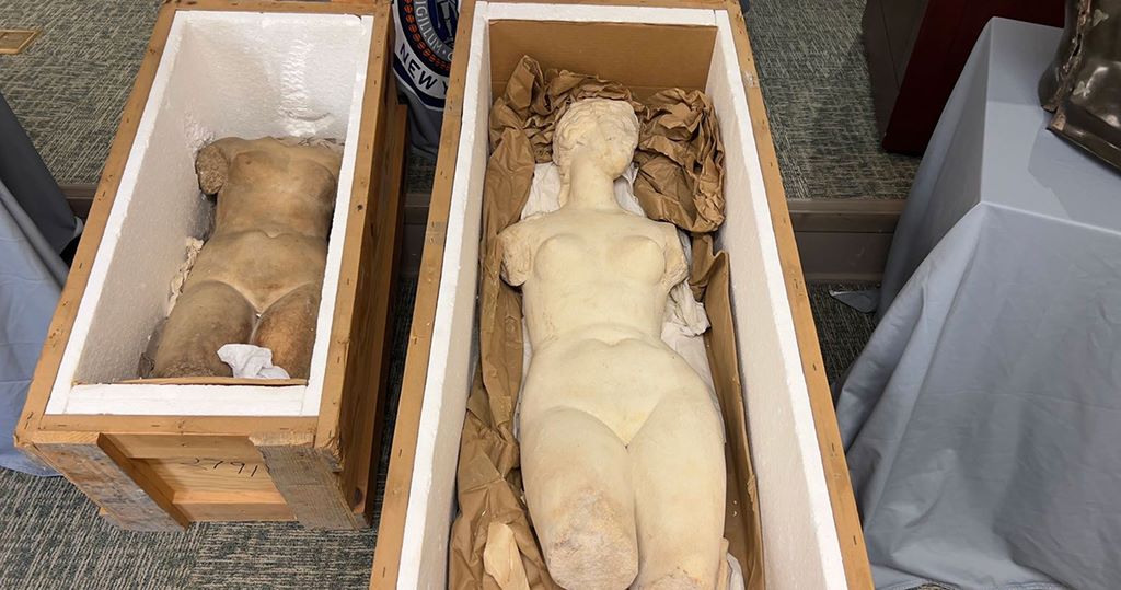 Επιστρέφουν δύο μαρμάρινα αγάλματα της Αφροδίτης, ένα μαρμάρινο κυκλαδικό ειδώλιο τύπου «Σπεδού», ένα κορινθιακό κράνος και άλλες 26 ελληνικές αρχαιότητες, συνολικής αξίας 3,7 εκατ. δολαρίων