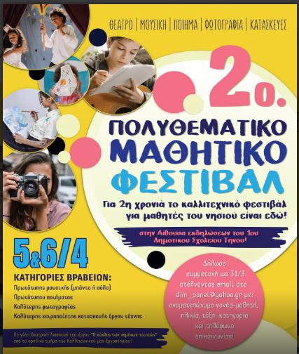 Το 2ο Καλλιτεχνικό Φεστιβάλ για μαθητές Δημοτικού, Γυμνασίου Λυκείου επιστρέφει τον Απρίλιο στη Τήνο.