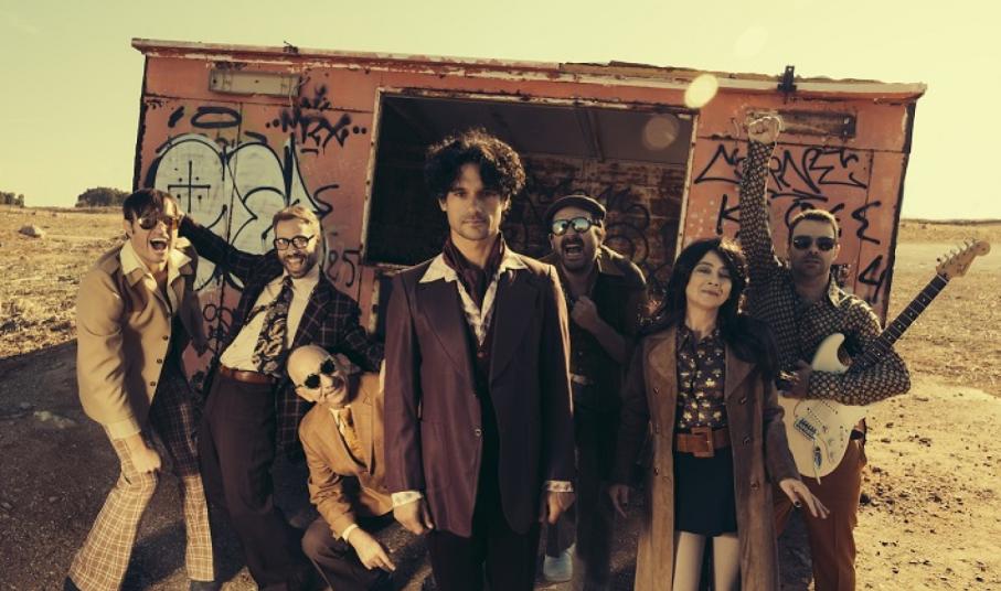 Η Ιφιγένεια Αστεριάδη δίπλα στον Πάνο Βλάχο και μαζί με τον υπόλοιπο θίασο της επιτυχημένης παράστασης «Ο Τυχαίος Θάνατος ενός Αναρχικού»