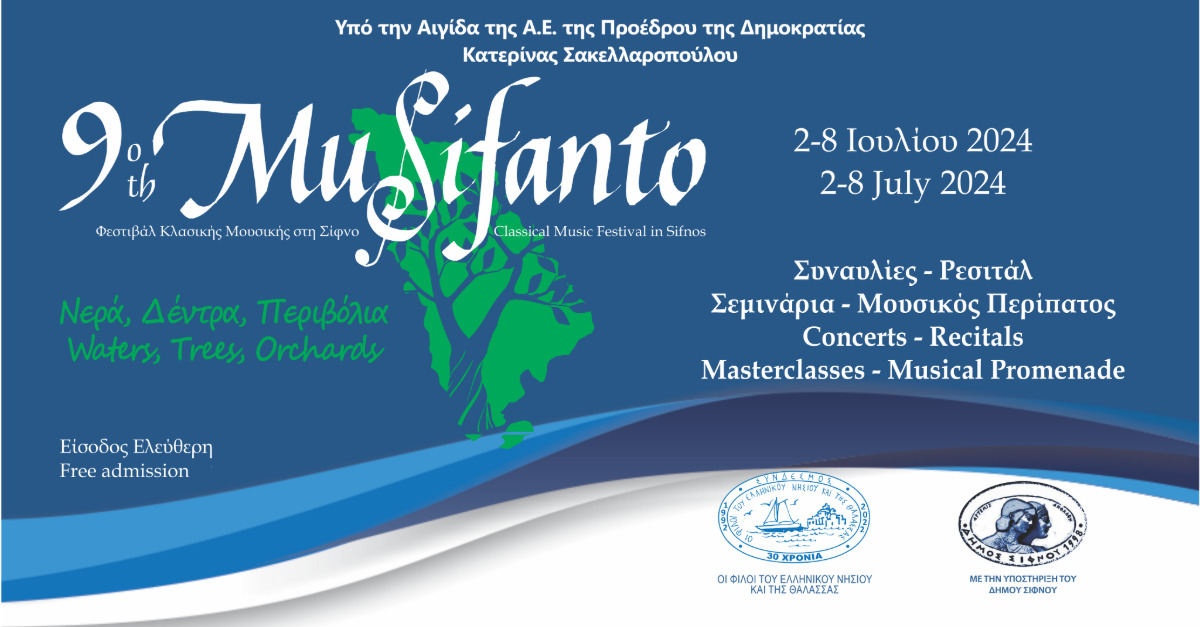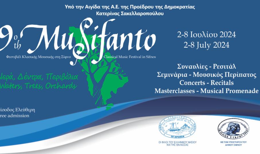 Την σύνδεση της κλασικής μουσικής με τη φυσική ομορφιά και την ζώσα μουσική παράδοση του νησιού, αναδεικνύει το φετινό Φεστιβάλ Κλασικής Μουσικής «MuSifanto» που επιστρέφει στη Σίφνο για 9η χρονιά, από τις 2 έως και τις 8 Ιουλίου, υπό την αιγίδα της η Πρόεδρος της Δημοκρατίας, Κατερίν Σακελλαροπούλου.