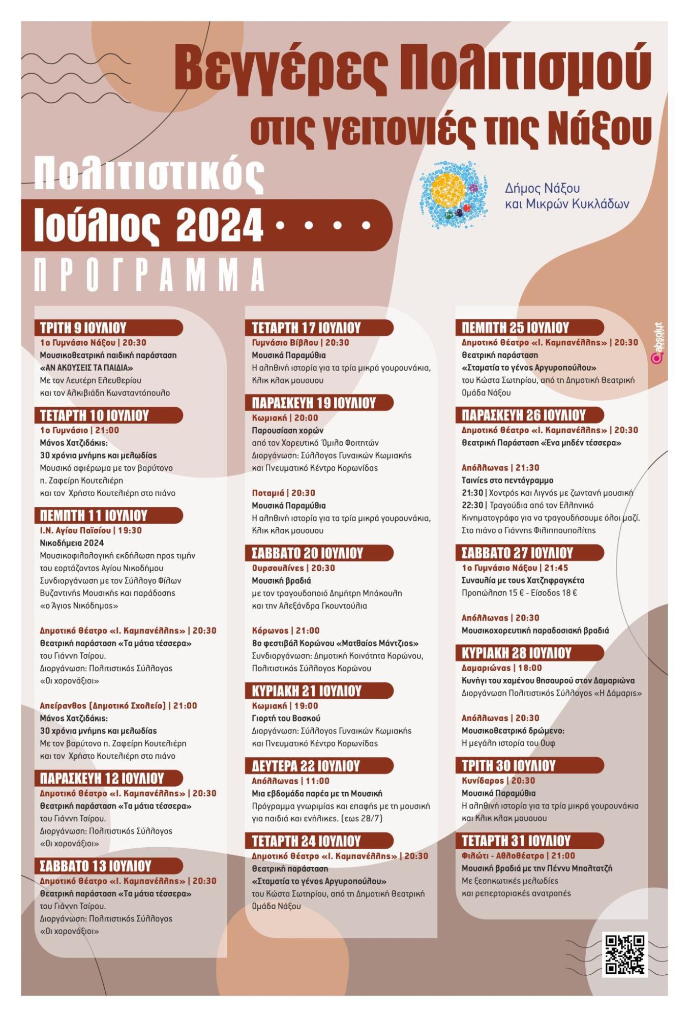 "Βεγγέρες πολιτισμού" τιτλοφορούνται οι εκδηλώσεις που έχει προγραμματίσει για το φετινό καλοκαίρι το τμήμα Πολιτισμού του Δήμου Νάξου και Μικρών Κυκλάδων.