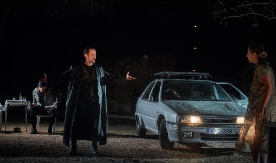 Ο λόγος για την παράσταση η "Αντιγόνη" του Σοφοκλή, με το μύθο της οικογένειας των Λαβδακιδών, να ξετυλίγεται από την αρχή, πάνω σε ένα αμάξι που χρησιμοποιείται ως πλατφόρμα, με τους τέσσερις ηθοποιούς να εναλλάσσουν τους ρόλους της τραγωδίας, του χορού και των υποκριτών.