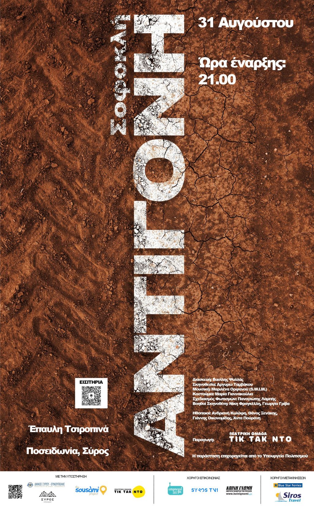 Μία ξεχωριστή παράσταση, η οποία συνδυάζεται με τη μοναδική οπτική της θεατρικής ομάδας Τικ Τακ Ντο, έρχεται το Σάββατο 31 Αυγούστου στις 9 το βράδυ, στον χώρο της έπαυλης Τσιροπινά, στη Σύρο.