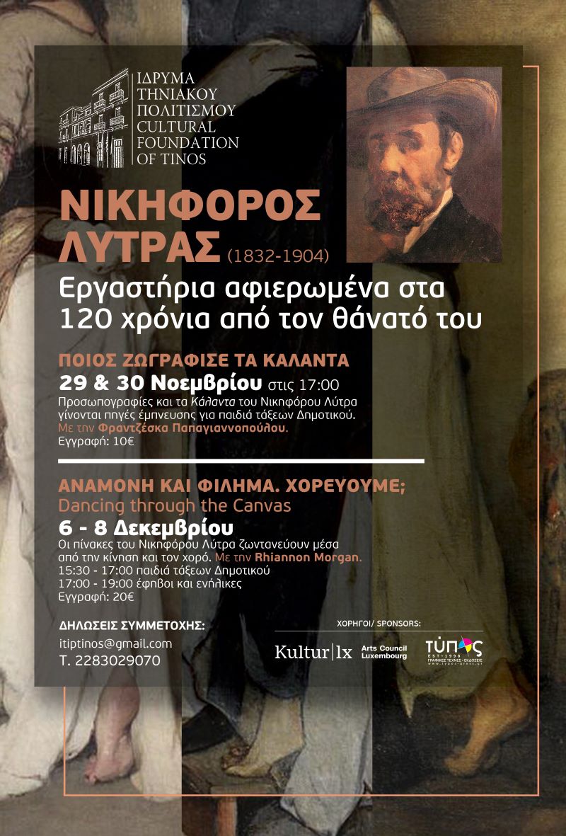 Με αφορμή τη συμπλήρωση 120 ετών από τον θάνατο του σπουδαίου Τήνιου Ζωγράφου Νικηφόρου Λύτρα, το Ίδρυμα Τηνιακού Πολιτισμού διοργανώνει μια σειρά εργαστηρίων για παιδιά και ενήλικες.