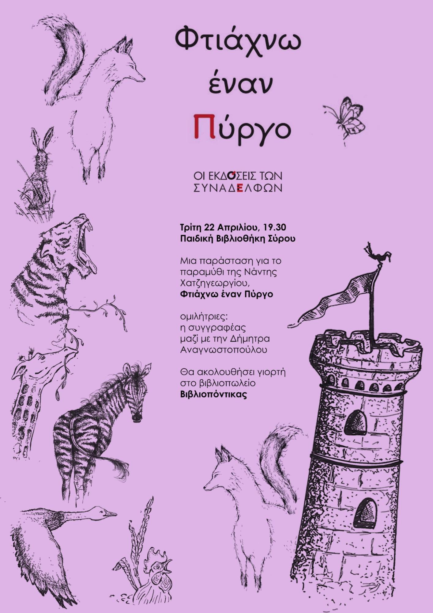 Μια παράσταση για το παραμύθι της Νάντης Χατζηγεωργίου, "Φτιάχνω έναν Πύργο", με ομιλίτρια τη συγγραφέα και την Δήμητρα Αναγνωστοπούλου.