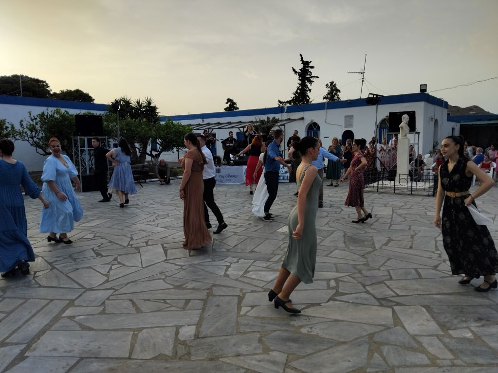 Χορευτές όλων των ηλικιών παρουσίασαν στον αύλειο χώρο του ναού Αγ. Ιωάννη της Ποσειδωνίας ένα πλούσιο πρόγραμμα παραδοσιακών χορών από διάφορες γωνιές της Ελλάδας, με τη συνοδεία της μουσικής ορχήστρας "Χοροσταλίτες", προσφέροντας στη συνέχεια στους συμμετέχοντες το πρώτο παραδοσιακό γλέντι του φετινού καλοκαιριού.