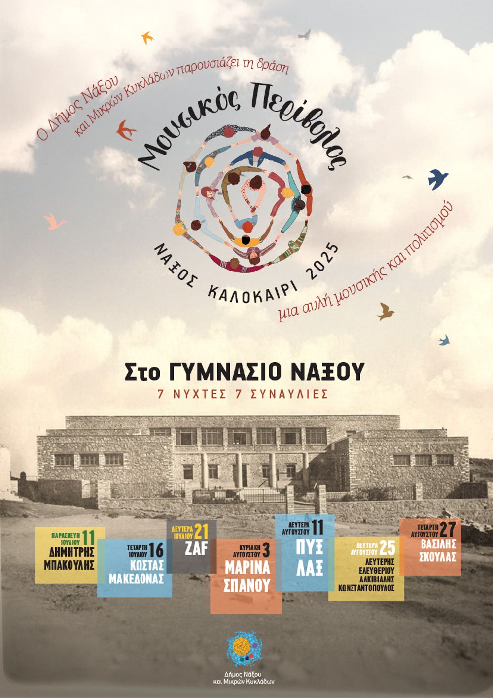 Ο Δήμος Νάξου και Μικρών Κυκλάδων εγκαινιάζει μια νέα πολιτιστική πρωτοβουλία, που φιλοδοξεί να αποτελέσει πυρήνα πολιτισμού για το φετινό καλοκαίρι και συγκεκριμένα τον "Μουσικό Περίβολο", έναν ανοιχτό χώρο δημιουργίας, συνάντησης και έκφρασης για όλους.