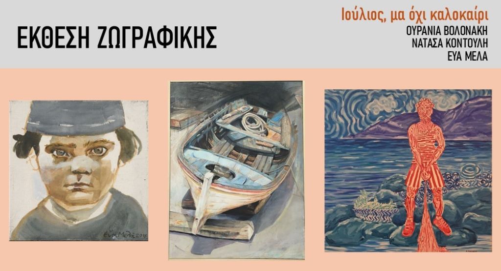 Οι εικαστικοί Εύα Μελά, Ουρανία Βολονάκη και Νατάσα Κοντούλη συναντιούνται στην ART ARK GALLERY στο Κάστρου της Νάξου. Η έκθεσή τους με τίτλο «Ιούλιος, μα όχι καλοκαίρι» έρχεται προβάλλοντας το λίγο και το πολύ, το γνωστό αλλά και το άγνωστο που όμως μας έχει γίνει συνήθεια.