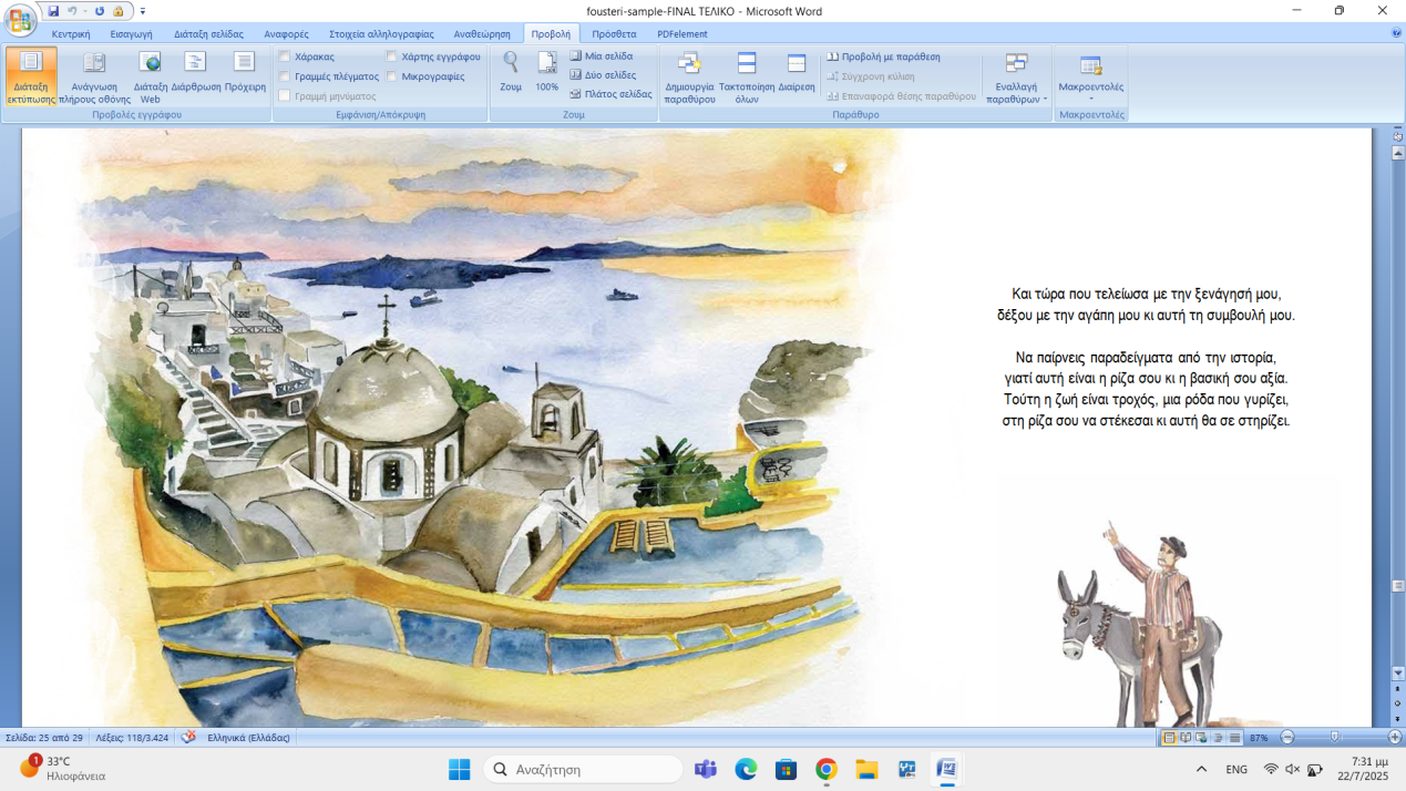 Έτσι, ώστε να μάθουν όλοι ότι η Σαντορίνη είναι ένα νησί ζωντανό κι απρόβλεπτο, που κοιμάται και ξυπνάει, που θυμώνει και ηρεμεί. Που όταν το πλησιάζεις, σ' αγκαλιάζει, σε ζεσταίνει, σου προσφέρει τα πάντα και το ερωτεύεσαι.