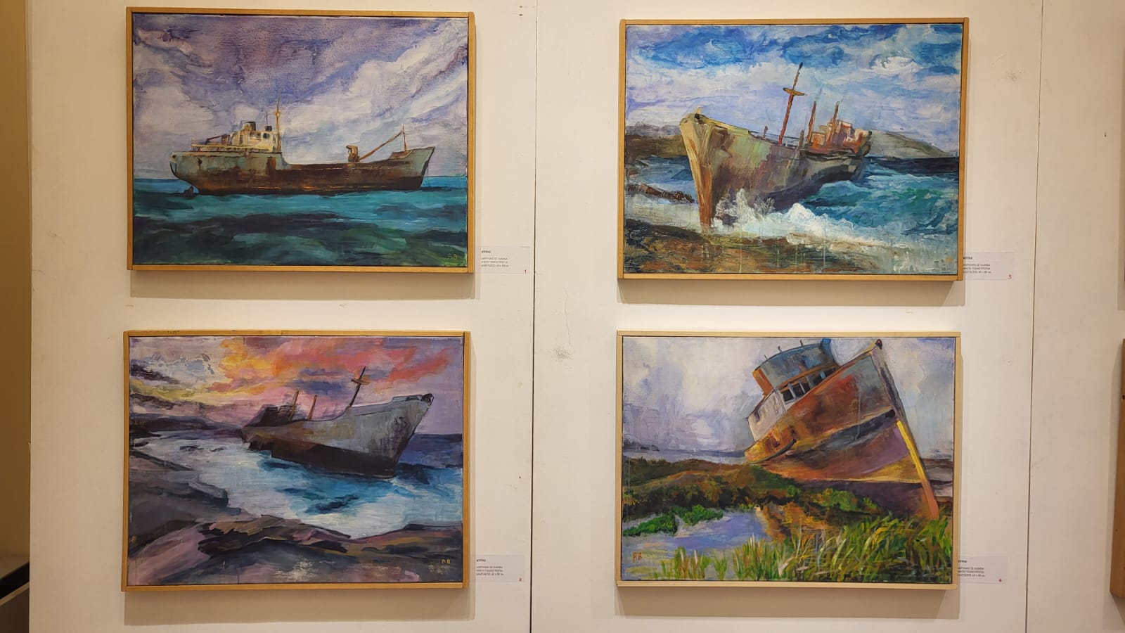 "Τα πρώτα μου έργα, γύρω στο 2017 - 2018, ήταν εμπνευσμένα από τα πλοία, καθώς ο σύζυγός μου ήταν ναυτικός και σε αυτόν τα αφιέρωσα μετά τη συνταξιοδότησή του. Μέσα από αυτά έβγαλα τον πόνο της θάλασσας και τη ξενιτιάς, καθώς αυτά τα συναισθήματα τα είχα ζήσει, λόγω του ότι ταξίδευα μαζί του", τόνισε χαρακτηριστικά η εικαστικός.