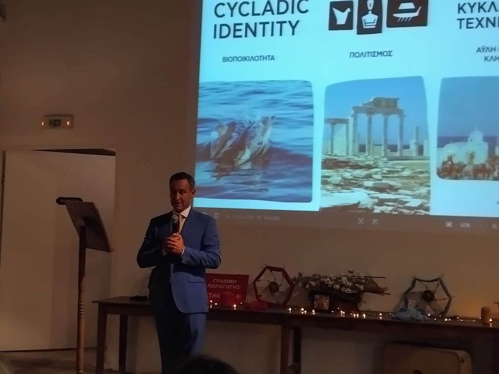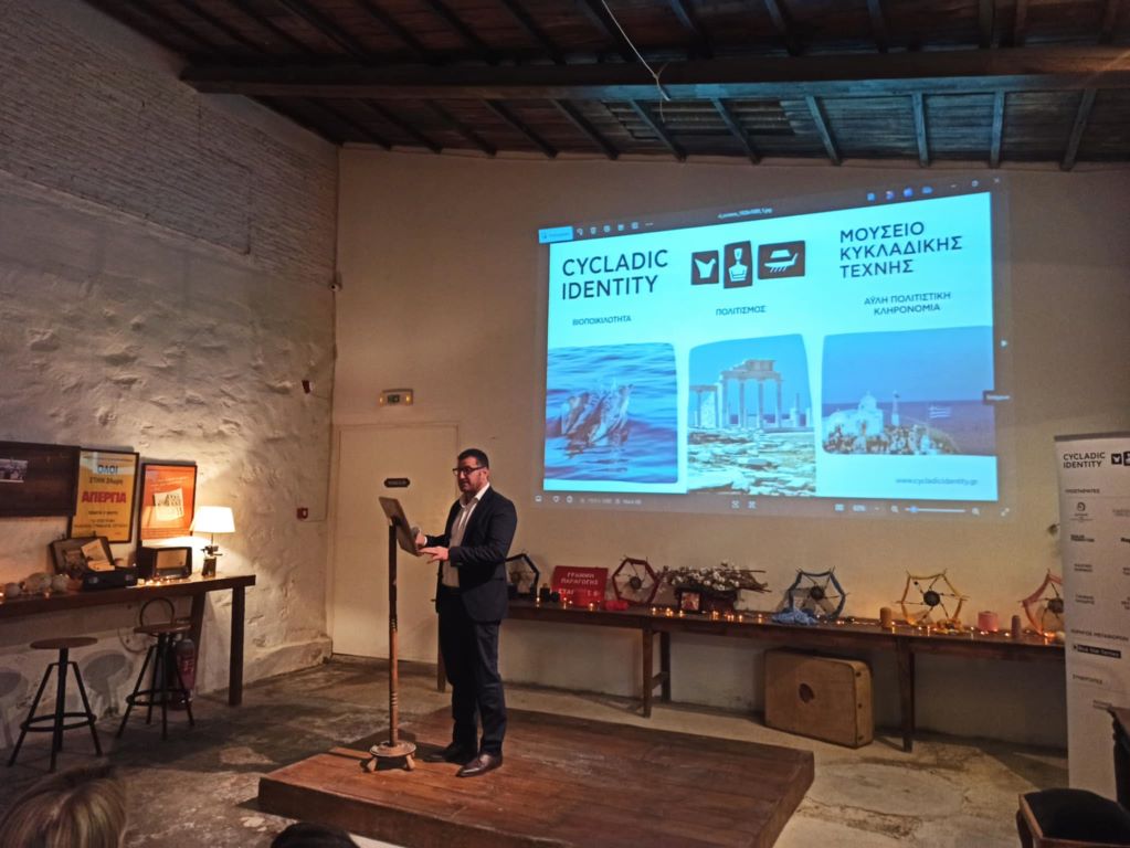 "Το Cycladic Identity είναι η πρωτοβουλία του Μουσείου Κυκλαδική Τέχνης, που έχει στόχο την προστασία της πολιτιστικής και φυσικής κληρονομιάς των Κυκλάδων και τη διατήρηση, αποκατάσταση και ανάδειξη της μοναδικής τους ταυτότητας. Με άξονες προτεραιότητας τον πολιτισμό, τη βιοποικιλότητα και την Άυλη Πολιτιστική Κληρονομιά, η πρωτοβουλία λειτουργεί ως πλατφόρμα προσέλκυσης και κατανομής πόρων σε προγράμματα τα οποία υλοποιούνται από φορείς που δραστηριοποιούνται στα νησιά", τόνισε η κα. Μαρινόπουλου.