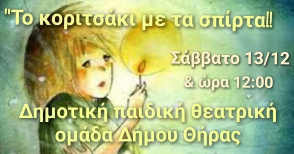 Την παράσταση «Το κοριτσάκι με τα σπίρτα», βασισμένη στο αγαπημένο παραμύθι του Χανς Κρίστιαν Άντερσεν, θα παρουσιάσει το Σάββατο 13 Δεκεμβρίου 2025, στις 12:00, στο Μπελλώνειο Πολιτιστικό Κέντρο, η Παιδική Θεατρική Ομάδα του Δήμου Θήρας.