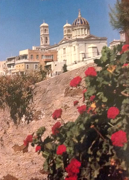 Ο ξακουστός Ναός της Παναγίας της Τήνου, έχει πανομοιότυπο ολοσκάλιστο τέμπλο της Μεταμόρφωσης. Στον αυλόγυρο της εκκλησίας βρίσκεται ο τάφος του Άνθυμου Γαζή, του μεγάλου διδασκάλου του γένους. Το 1826, όταν η νέα πόλη αρχίζει να αναπτύσσεται από το εμπόριο και τη ναυτιλία, οι δημογέροντες συγκεντρώνοντας στις αυλές του Ναού και με προτροπή του Χιώτη Λουκά Ράλλη αποφασίζουν ομόφωνα να αφιερώσουν τη νέα πόλη στον Κερδώο αλλά και στον λόγιο Θεό Ερμή! Και… τα βαφτίσια έγιναν.