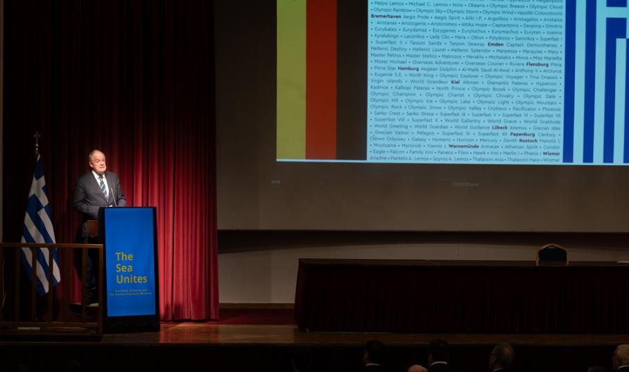 Μεταξύ άλλων, ανέφερε πως η έκθεση “απευθύνει μηνύματα, γύρω από την αξία της διεθνούς συνεργασίας στη θάλασσα, τα οποία η πατρίδα μας, μπορεί να μεταλαμπαδεύσει στη διεθνή κοινή γνώμη, με πειστικότητα. Και μπορεί να το πράξει, γιατί η Ελλάδα ευτύχησε να έχει σπουδαίους, άτυπους πρέσβεις: τους θαλασσινούς επιχειρηματίες, που σε μεγάλο βαθμό προέρχονται από οικογένειες που γέννησε η ίδια η ελληνική ναυτοσύνη”. Και που, όπως πρόσθεσε παρακάτω, οι Έλληνες εφοπλιστές “προσέφεραν και προσφέρουν - με ανταγωνιστικούς όρους - τις καλύτερες δυνατόν υπηρεσίες στον χώρο των διεθνών θαλάσσιων μεταφορών”, χωρίς ποτέ να έχουν επιβαρύνει τον κρατικό προϋπολογισμό. “Και το έκαναν, χωρίς ποτέ να ζητήσουν επιδοτήσεις ή οποιαδήποτε οικονομική ενίσχυση από την πατρίδα τους”, συμπλήρωσε, υπογραμμίζοντας, μάλιστα, πως, “ο αντίκτυπος στη χώρα μας από τη συγκεκριμένη δραστηριότητά τους, προσλαμβάνει ιδιαίτερη βαρύτητα”.