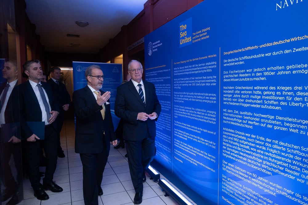 Για τον χαρακτήρα της έκθεσης μίλησε και το μέλος του Διεθνούς Ναυτικού Μουσείου του Αμβούργου, Γερμανός, Peter Tamm, υπογραμμίζοντας πως το περιεχόμενό της, αναδεικνύει ένα βασικό κεφάλαιο του γερμανικού οικονομικού θαύματος, που δεν είναι τόσο γνωστό, αλλά που όμως, συνδέεται με τον ρόλο της ελληνικής ναυτιλίας και της ναυπηγικής βιομηχανίας στη Γερμανία. “Έλληνες πλοιοκτήτες, πολλοί από τους οποίους είχαν επιβιώσει από τον πόλεμο και την Κατοχή, στράφηκαν στα αναδυόμενα γερμανικά ναυπηγεία για να οικοδομήσουν ένα νέο μέλλον — όχι μόνο για τους στόλους τους, αλλά και για την παγκόσμια ναυτιλιακή οικονομία. Σε αντάλλαγμα, η Γερμανία βρήκε στην Ελλάδα έναν εταίρο που πίστεψε στη μηχανική της, στη δεξιοτεχνία της και στις δυνατότητές της”, σημείωσε με σαφήνεια, “μυώντας” παρακάτω τους παριστάμενους στις λεπτομέρειες της έκθεσης.