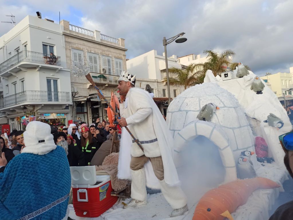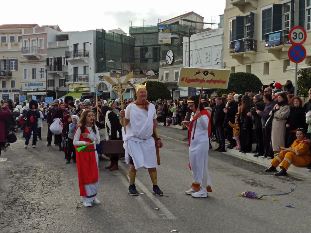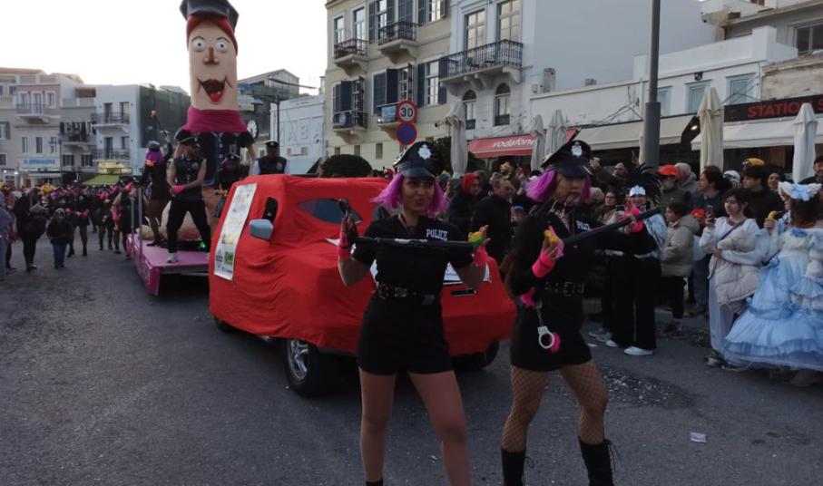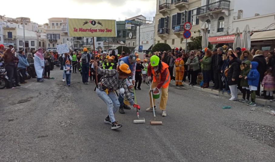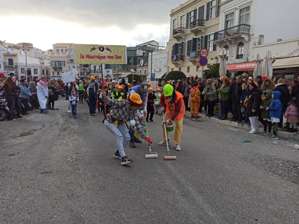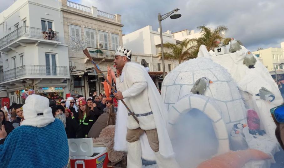 Πάνω από 1.000 καρναβαλιστές ξεχύθηκαν με τα ευφάνταστα άρματά τους στους δρόμους της Ερμούπολης, παρασύροντας τους κατοίκους και τους δεκάδες επισκέπτες του νησιού, σε ένα τρελό αποκριάτικο πάρτι.