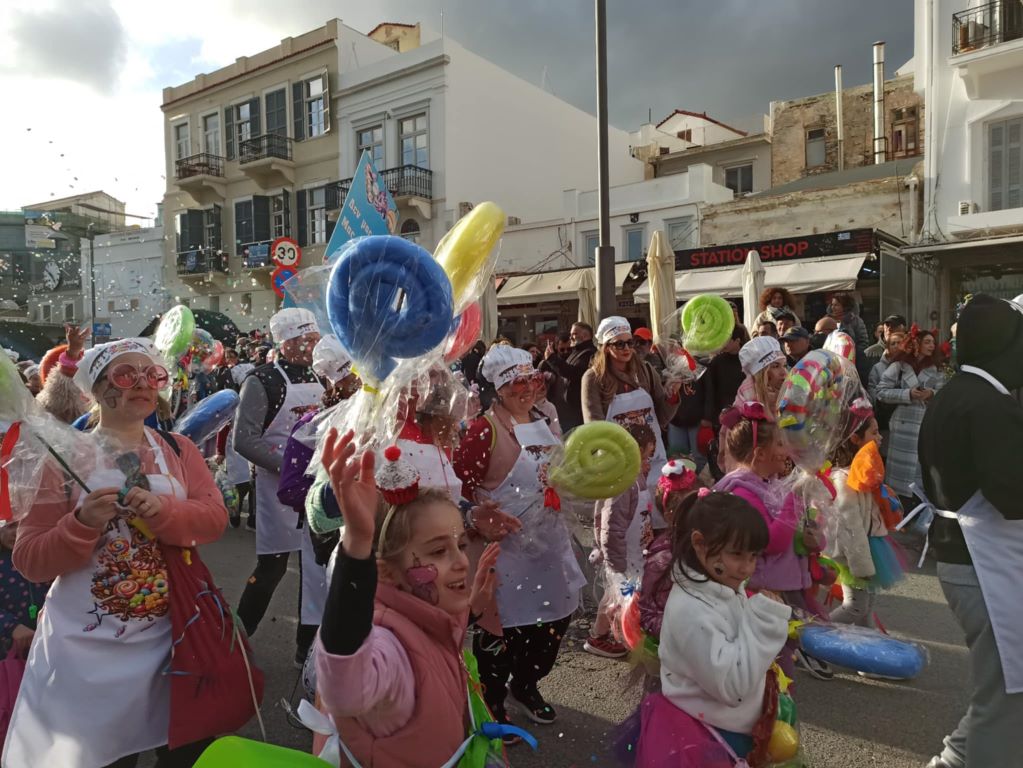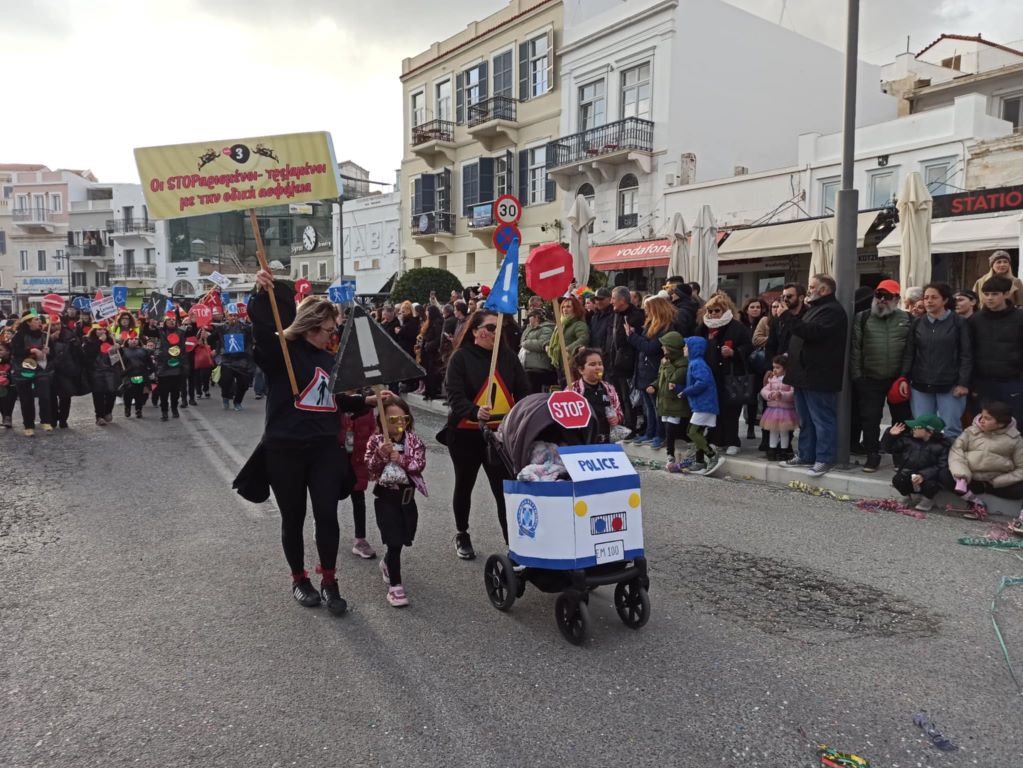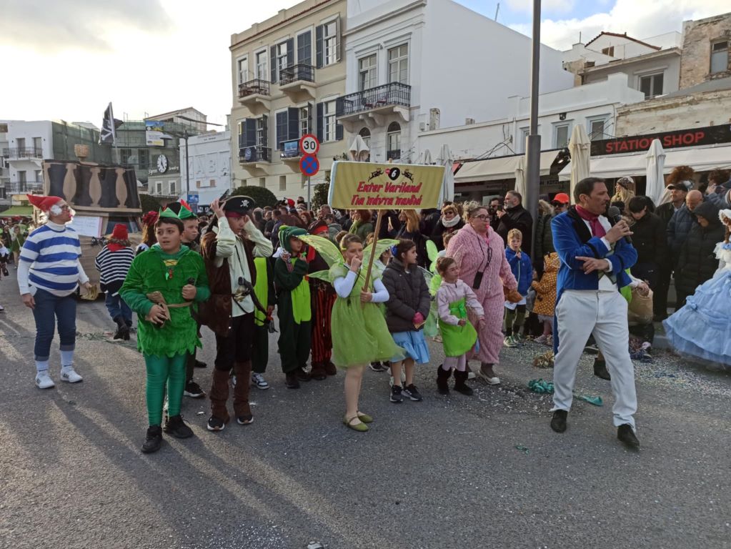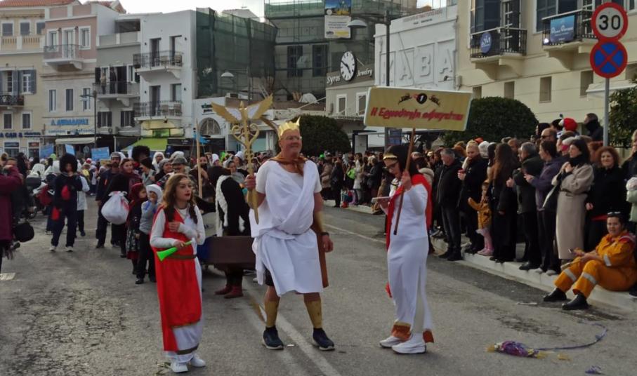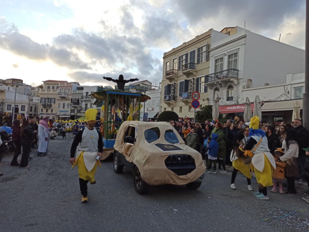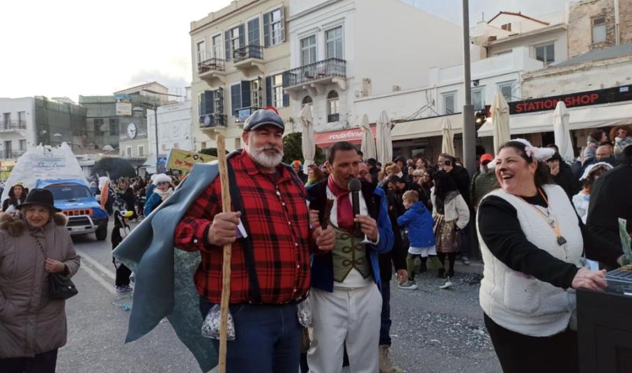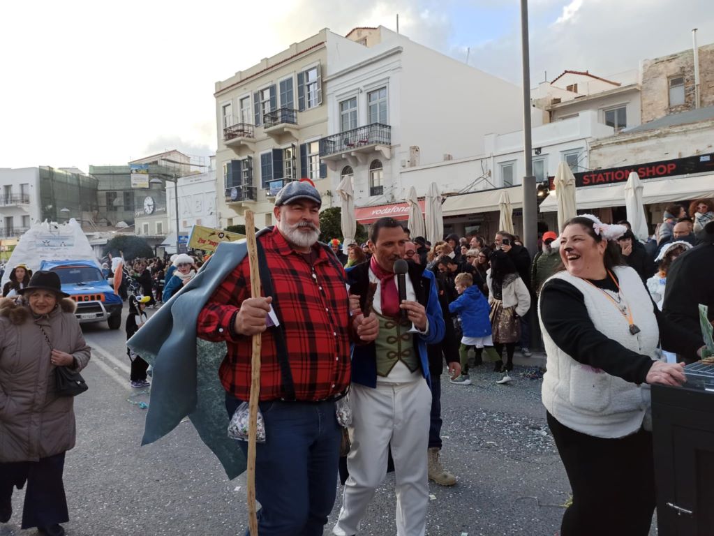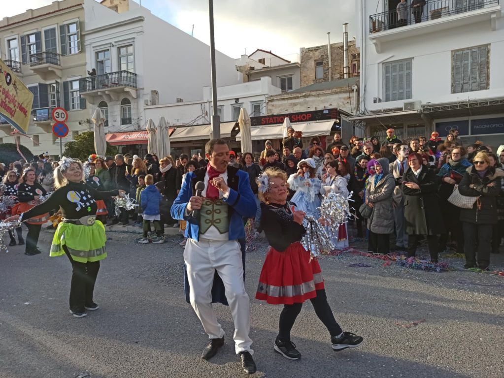 Οι καρναβαλιστές, με την πολύτιμη βοήθεια των εθελοντών, αλλά και των παρουσιαστών και συγκεκριμένα της Μαριάννας Βακονδίου και του Γιώργου Ρούσσου, μέσω του κεντρικού παραλιακού δρόμου του λιμανιού και των πεζόδρομων του κέντρου, κατευθύνθηκαν στην πλατεία Μιαούλη, όπου εκεί έστησαν μία μεγάλη γιορτή με αποκριάτικη μουσική, παρουσιάζοντας παράλληλα τα θέματα των 13 ομάδων που συμμετείχαν στη φετινή διοργάνωση.
