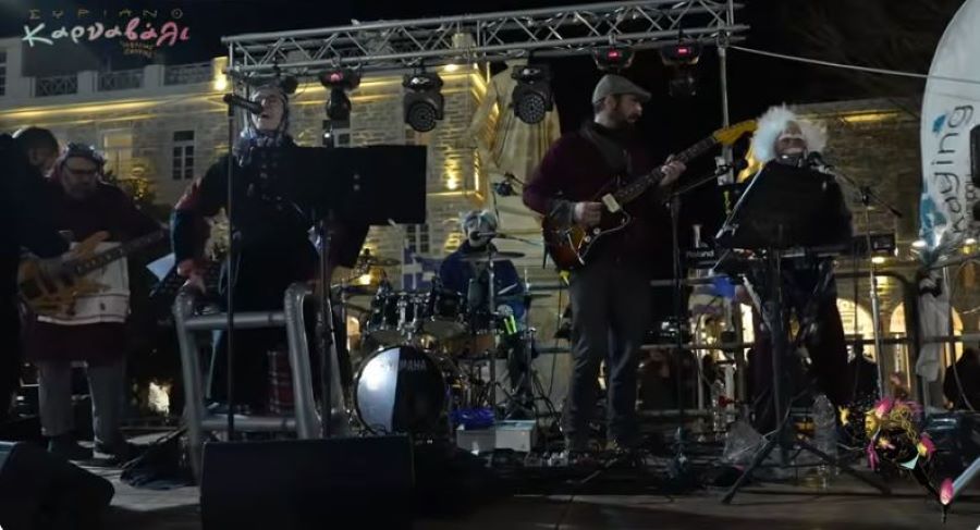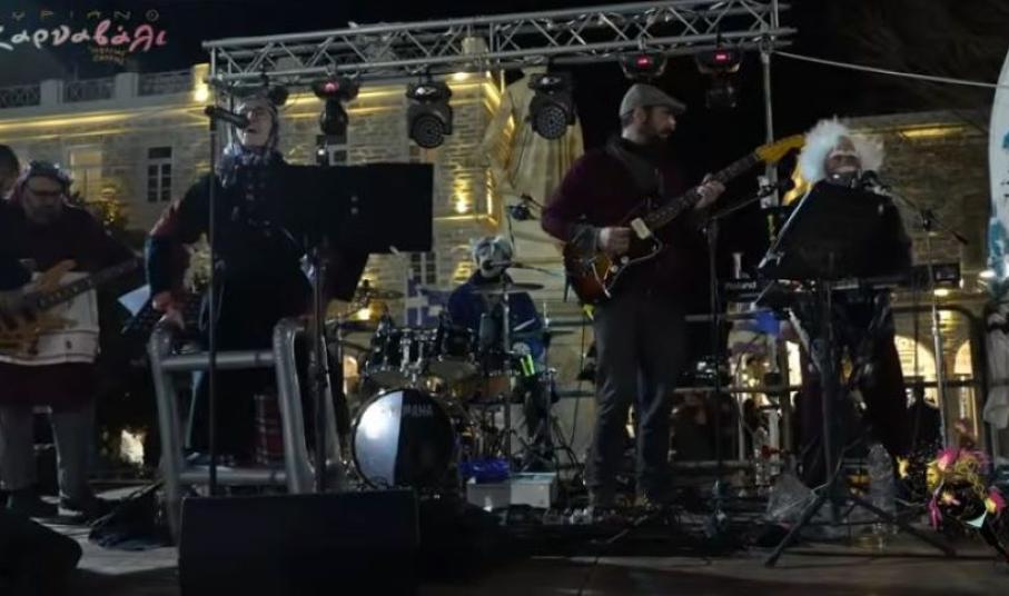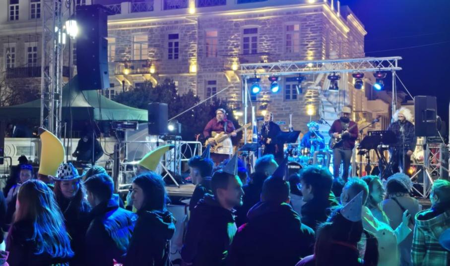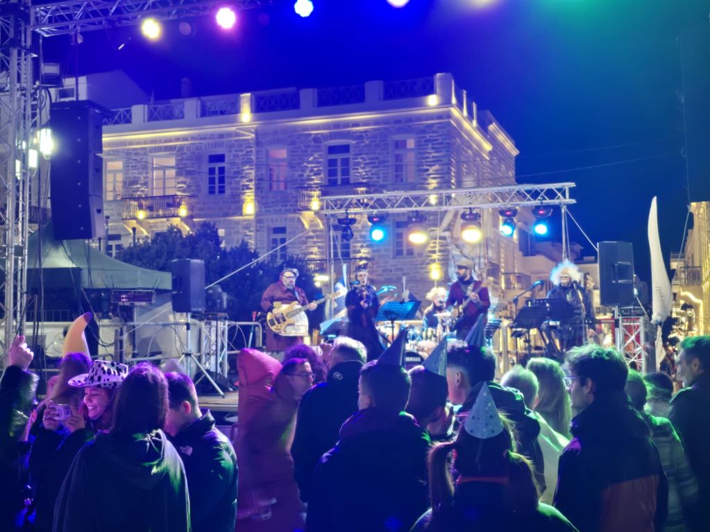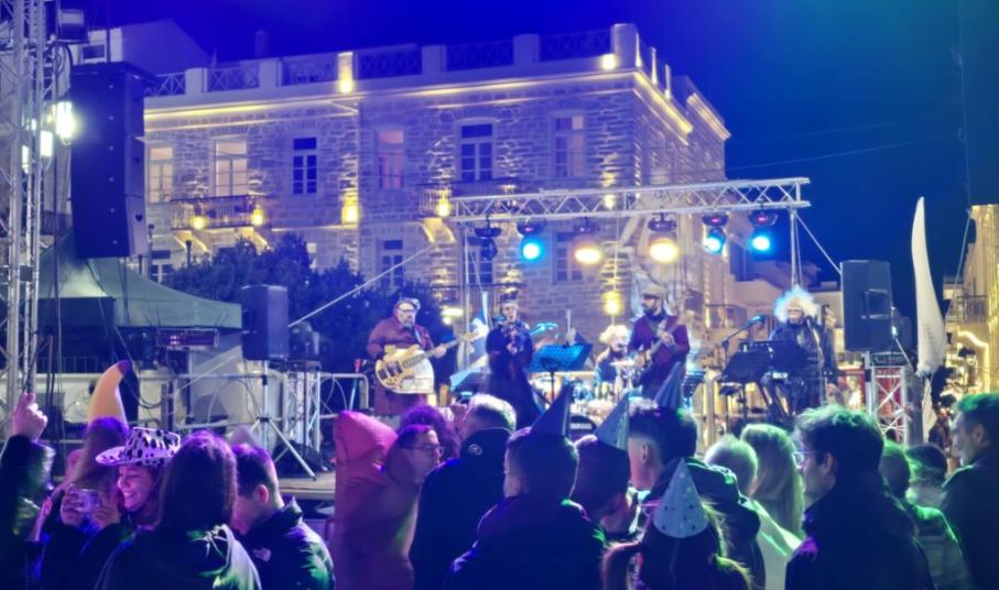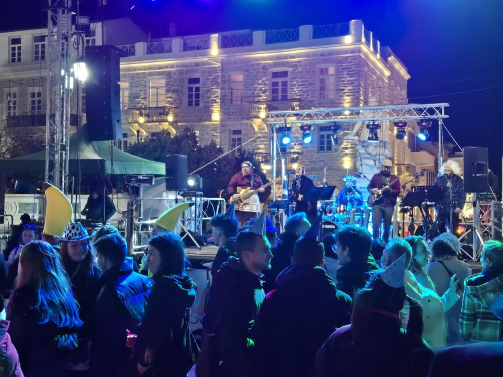 Οι καρναβαλικές εκδηλώσεις, ωστόσο, δεν ολοκληρώθηκαν με την παρουσίαση των 13 ομάδων, καθώς αμέσως μετά τη λήξη της μεγάλης παρέλασης, η πλατεία Μιαούλη μετατράπηκε σε ένα μεγάλο πάρτι κάτω από τους ήχους της μουσικής και των τραγουδιών συγκροτήματος Shiny Dimes.