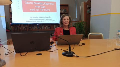 Μία εκπαιδευτική αναδρομή στην ιστορία της Σύρου, επικεντρώνοντας στον 18ο αιώνα, είχαν την ευκαιρία να απολαύσουν όσοι συμμετείχαν στην εκδήλωση που πραγματοποιήθηκε το Σάββατο το βράδυ στον χώρο της Δημοτικής Βιβλιοθήκης του Δήμου Σύρου - Ερμούπολης. Πιο συγκεκριμένα και στο πλαίσιο της γιορτής της Παγκόσμιας Ημέρας της Γυναίκας, η Δρ. Ιστορίας, Εκπαίδευσης και Πολιτισμού, Ελπίδα Πρίντεζη - Κ