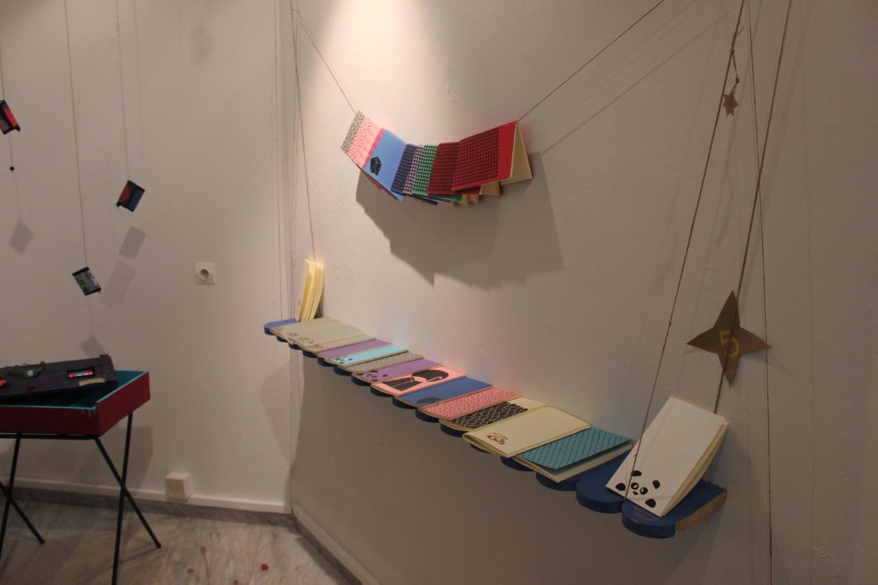 Οι επισκέπτες έχουν την ευκαιρία να απολαύσουν μία συλλογή από ευφάνταστα κοσμήματα, τα οποία σχεδιάζει και κατασκευάζει η κ. Παπαγεωργίου, μεταξοτυπίες, μπλουζάκια και τσάντες, αφίσες και καρτ ποστάλ της video artist Αφροδίτης Μπιτζούνη, πορτοφόλια από ανακυκλωμένες συσκευασίες χυμών και γάλακτος, καθώς και σημειωματάρια ραμμένα στο χέρι, σε παιχνιδιάρικα χρώματα.