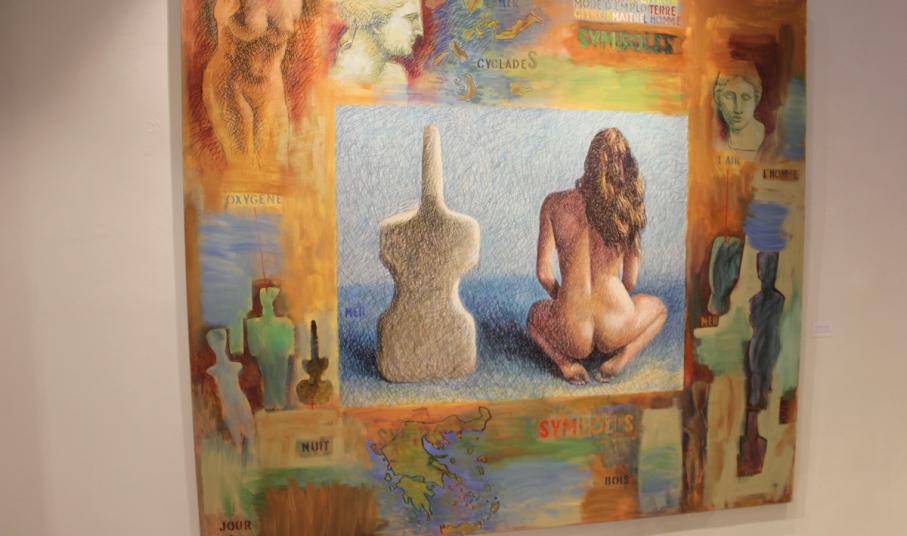 Από την πλευρά του, ο κ. Σάμιος εξήγησε ότι η έκθεση “3.500 χρόνια στην ίδια παραλία” γεννήθηκε χάρη στην ανάγκη του να μη σταθεί αμέτοχος απέναντι στην αλλαγή της εποχής. “Το σύμβολο της αλλαγής ήταν πάντα το γυναικείο γυμνό, είτε σαν θεά, είτε σαν γυναίκα και μάνα Όλα τα έργα μου μπαίνουν μέσα στα ατελιέ των μεγάλων ζωγράφων ή χρησιμοποιώ στοιχεία από την αρχαιότητα και τις Κυκλάδες σύμβολα για να δείξω ότι ξυπνάμε, ανοίγουμε τα μάτια μας, γίνεται μια μεγάλη αλλαγή και θα τη συναντήσουμε μπροστά μας” ανέφερε χαρακτηριστικά.