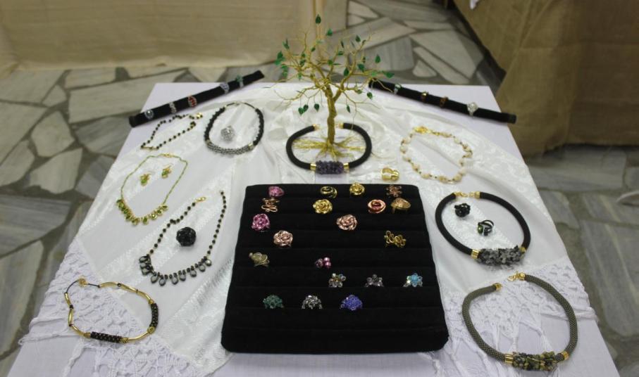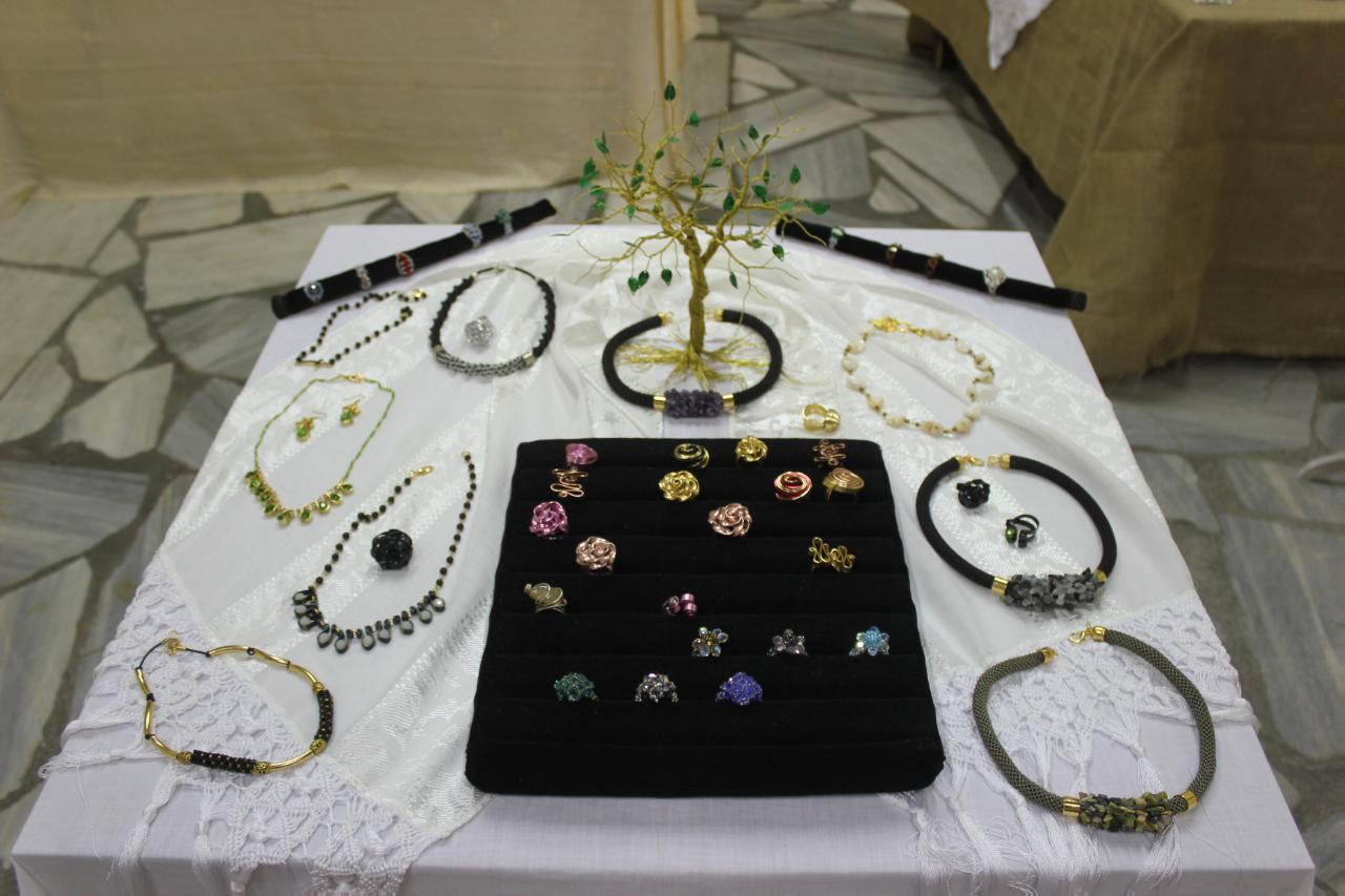 Με βασικό υλικό το κρύσταλλο, τα σκουλαρίκια, τα μενταγιόν και τα βραχιόλια της κ. Κοσμά είναι αποτέλεσμα μιας πολυετούς ενασχόλησης με το αντικείμενο, το οποίο μοιράζεται για πρώτη φορά με το φιλότεχνο κοινό. Στην έκθεση περιλαμβάνονται ακόμα πλεκτά και βραχιολάκια με μακραμέ, δεντράκια από αλπακά και κρύσταλλο, καθώς και πολλά ακόμα αντικείμενα, ρετρό αισθητικής.