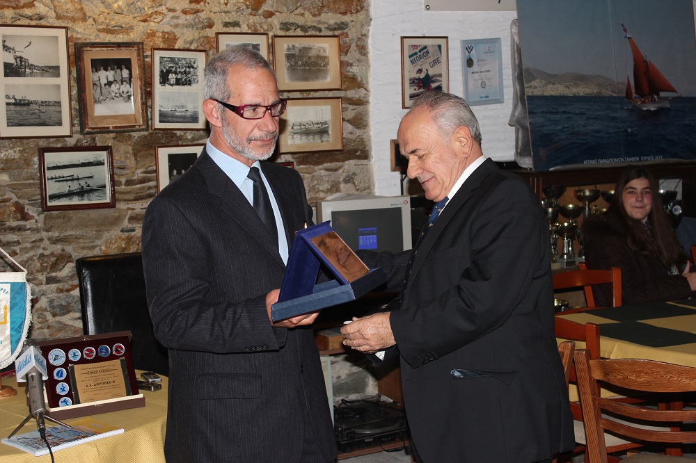 Την τιμητική πλακέτα απένειμε ο πρόεδρος του Ομίλου κ. Ισίδωρος Μαμίδης, ο οποίος βράβευσε επίσης τον κ. Σταυγιανουδάκη της Sekavin και τον πρώην πρόεδρο του Ν.Ο.Σ και έφορο ιστιοπλοΐας κ. Ζαννή Μιχάλοβιτς για την πολύτιμη προσφορά τους.
