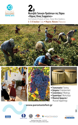 Πραγματοποιείται για δεύτερη συνεχόμενη χρονιά το φεστιβάλ τοπικών προϊόντων ''Πάριος οίνος ευφραίνει'' από την κοινωφελή δημοτική επιχείρηση πολιτισμικής ανάπτυξης Πάρου και με την αρωγή του δήμου Πάρου, από της 4 έως τις 6 Ιουλίου, με στόχο την ανάδειξη της αμπέλου οινικής κληρονομιάς, μέσα από σπάνιες γηγενείς ποικιλίες του νησιού.