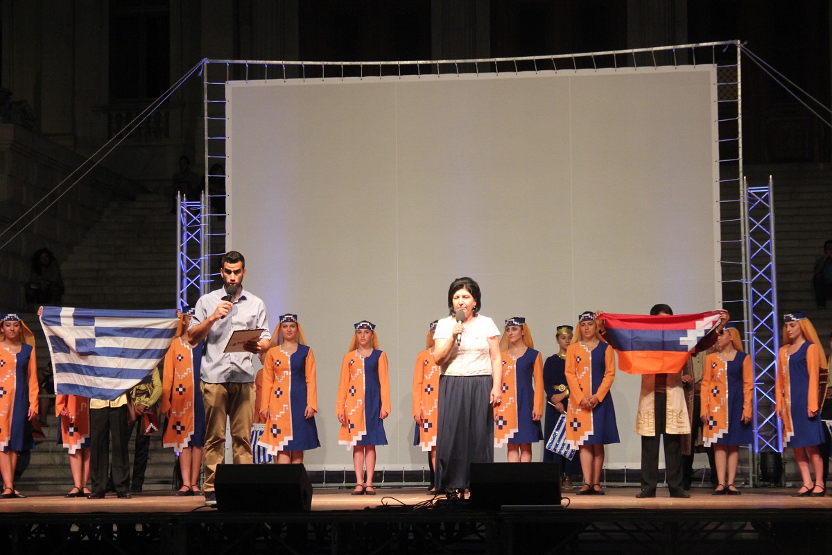 Σημειώνεται ότι η εκδήλωση έγινε με αφορμή την επέτειο των 100 χρόνων από τη Γενοκτονία των Αρμενίων. «Η ιστορία κάθε έθνους είναι σημαδεμένη από γεγονότα και ημερομηνίες που καθορίζουν την περαιτέρω πορεία του. Έτσι, στη μακροχρόνια ιστορία του αρμενικού λαού, υπάρχει ένα «πριν» και ένα «μετά» τη Γενοκτονία του 1915», σημείωσαν οι εκπρόσωποι της Αρμενικής Εθνικής Επιτροπής. «Κανένα άλλο γεγονός και καμιά άλλη ημερομηνία δε σημάδεψαν ποτέ τόσο βαθιά το συλλογικό μας βίο και τη συλλογική μας συνείδηση. Έναν αιώνα μετά το έγκλημα κατά της ανθρωπότητας που ονομάζεται Γενοκτονία των Αρμενίων, η ιστορία επαναλαμβάνεται στα ίδια μέρη, στο ίδιο ματωμένο Ντερ Ζορ, με άλλους πρωταγωνιστές αλλά με την ίδια φρικαλεότητα. Κάτι παρόμοιο συμβαίνει και με την καταστροφή της πολιτιστικής κληρονομιάς των λαών της περιοχής. Όλα αυτά εξηγούνται με μια λέξη: ατιμωρησία. Εμείς, το «ποτέ ξανά» στις γενοκτονίες πρέπει να το οικοδομούμε κάθε μέρα και να ισχύει για όλους τους λαούς. Πρόκειται για το ελάχιστο χρέος μας προς τους προγόνους μας και προς τις επόμενες γενιές. Επειδή θυμόμαστε, αλλά και διεκδικούμε», κατέληξαν, εισπράττοντας το θερμότερο χειρότερο του κοινού το οποίο συγκεντρώθηκε στην πλατεία Μιαούλη.