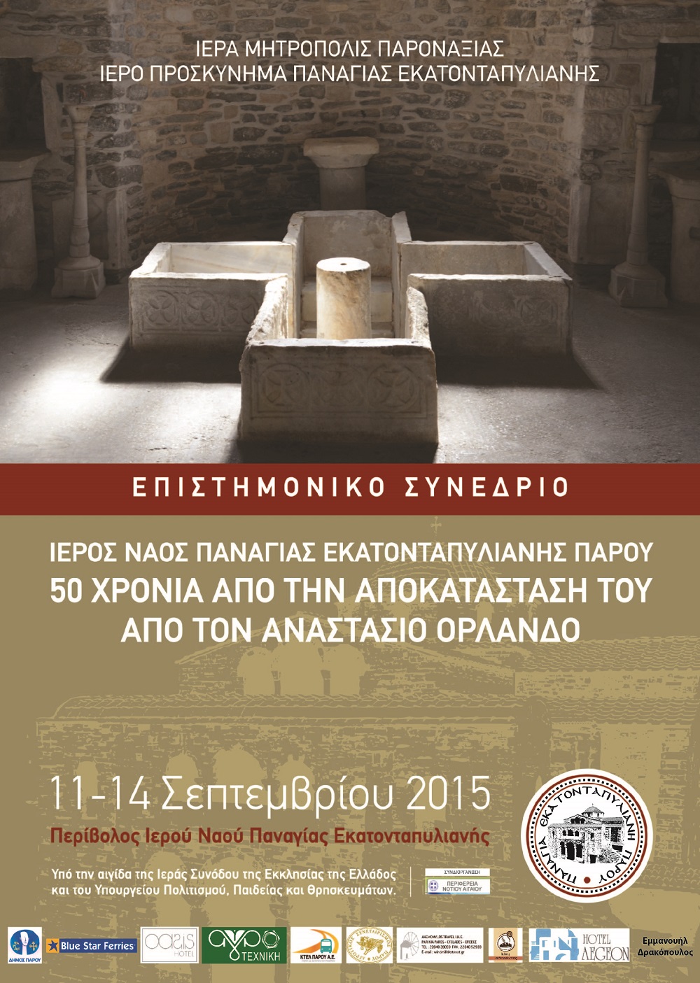 Την πρωτοβουλία για την οργάνωση του συνεδρίου είχε ο Σεβασμιώτατος Μητροπολίτης Παροναξίας κ .Καλλίνικος και η Διοικούσα Επιτροπή του Ιερού Προσκυνήματος της Εκατονταπυλιανής και είναι αφιερωμένο στον αείμνηστο καθηγητή και ακαδημαϊκό Αναστάσιο Ορλάνδο, που πριν από 50 χρόνια αναπαλαίωσε το μνημείο των 1700 ετών και το επανέφερε στην αρχική του μορφή, όπως ακριβώς ήταν την Ιουστινιάνειο περίοδο, όταν κατασκευάστηκε ο σημαντικός αυτός παλαιοχριστιανικός ναός, που εντυπωσιάζει για το μέγεθός του και το βαπτιστήριο που σώζεται σχεδόν ανέπαφο.