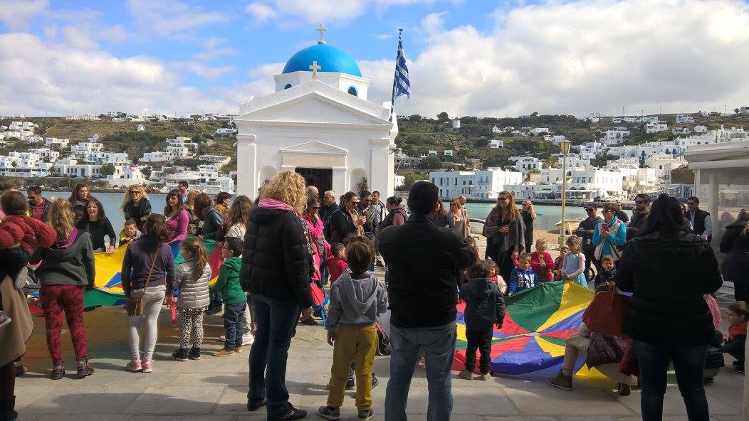 Τέλος, «Ρόδες, γέλια και χαρά, χρώματα και παιχνίδια με συναισθήματα πολλά» κατέκλυσαν χθες τη Χώρα Μυκόνου. Ποδήλατα και πατίνια στη σειρά με αφετηρία το Ξενοδοχείο Λητώ, ξεκίνησαν στις 11:00 με τερματισμό το Δημαρχείο. Εκεί, μεγάλα αερόστατα και πίνακες ζωγραφικής περίμεναν τους μικρούς ποδηλάτες για να εκφράσουν και να αποτυπώσουν συναισθήματα με την καθοδήγηση παιδαγωγών των παιδικών σταθμών του Δήμου Μυκόνου. Κατά τη διάρκεια της εκδήλωσης πραγματοποιήθηκαν ψυχοκινητικές δραστηριότητες στο γιαλό, μπροστά στο Δημαρχείο και τον Άγιο Νικολάκι.