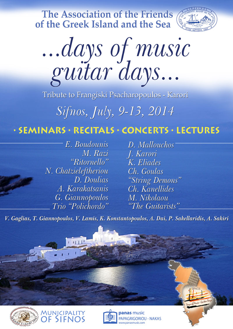 Τα απογεύματα του φεστιβάλ θα είναι αφιερωμένα στις πρόβες της Ορχήστρας των Κιθαριστών των Μουσικών Εργαστηρίων, εκτός της τελευταίας ημέρας, που θα πραγματοποιηθεί περιήγηση στα αξιοθέατα του νησιού της Σίφνου.