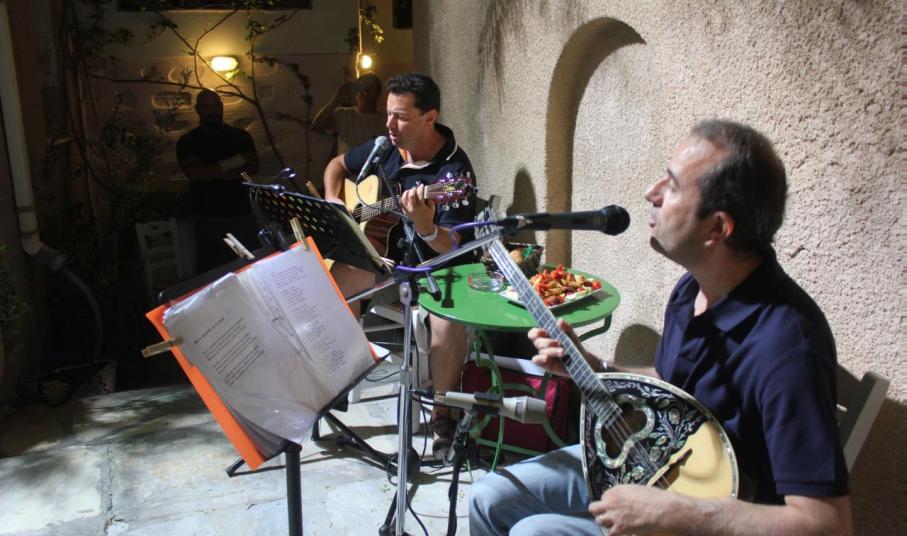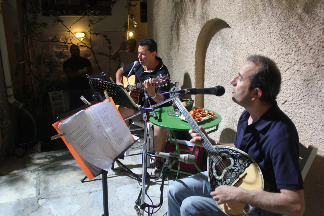 Γνωστά τραγούδια συντρόφευσαν μουσικά τους παρευρισκόμενους, οι οποίοι ήταν σκορπισμένοι σε σκαλάκια, μπαλκόνια και σε κάθε γωνιά της πλατείας σαν μία μεγάλη και αγαπημένη παρέα.