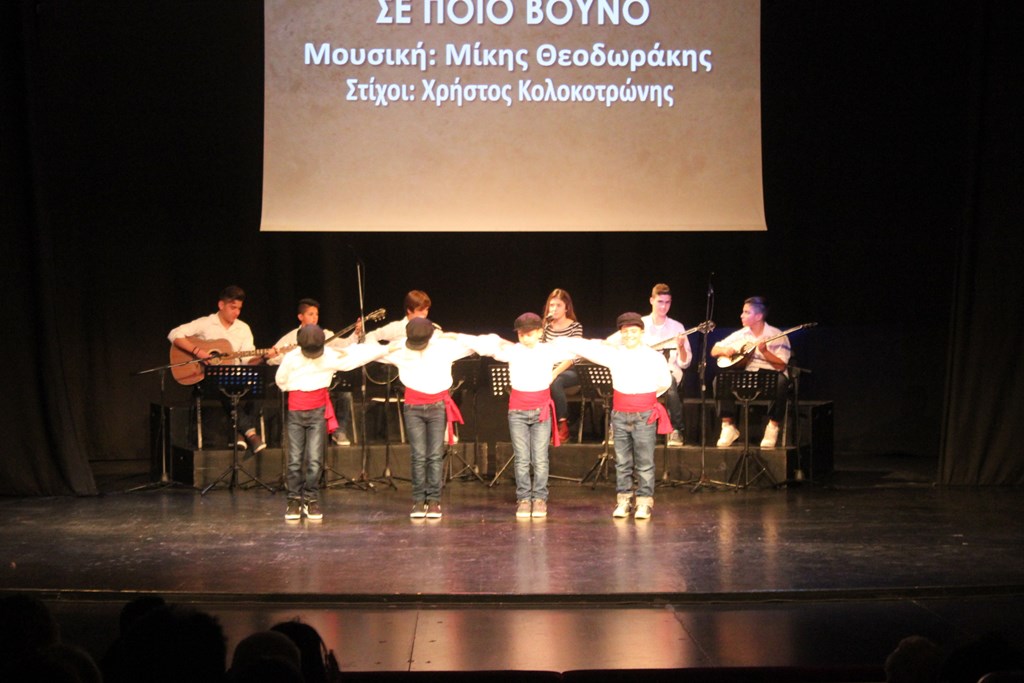 Η βραδιά ήταν πλημμυρισμένη από δημοφιλή τραγούδια και χορευτικά του Ελληνικού Κινηματογράφου και του Ρεμπέτικου, που όλοι έχουμε τραγουδήσει και χορέψει. Ο Γιώργος Ζαμπέτας («Το Χασάπικο της ταβέρνας», «Δεν έχω δρόμο να διαβώ»), ο Μίκης Θεοδωράκης («Οι Χαρταετοί», «Σε ποιο βουνό», «Χορός του Ζορμπά»), ο Μάνος Χατζιδάκις («Τα παιδιά του Πειραιά»), ο Σταύρος Ξαρχάκος («Ο χορός του Σάκαινα», «Το Καλντερίμι») και φυσικά ο «αθάνατος» Συριανός ρεμπέτης Μάρκος Βαμβακάρης («Χαράματα η ώρα τρεις», «Φραγκοσυριανή», «Κάθε βράδυ θα σε περιμένω» κ.α). ένωσαν μικρούς και μεγάλους σε μια εκδήλωση φτιαγμένη από τα παιδιά για τα παιδιά της Σύρου μας.
