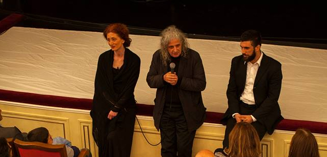 “Μπορώ να πω ότι είχαμε δύο διαφορετικού τύπου εμπειρίες ως προς το κοινό. Την πρώτη μέρα παίξαμε για μαθητές Γυμνασίου και Λυκείου και ήταν πολύ μεγάλη η συγκίνηση και η δική μας και των παιδιών και των καθηγητών. Καταρχάς, παίξαμε το έργο χωρίς αισθητικά στοιχεία, φώτα και κοστούμια. Στόχος μου ήταν να καταλάβουν τα παιδιά ότι μια παράσταση, μας αρέσει – δε μας αρέσει, δεν οφείλεται στα εικαστικά ή στα αισθητικά στοιχεία, τα οποία και βεβαίως είναι πάρα πολύ ωραία, αλλά πιστεύω πάντα ότι είναι καλύτερα να επικεντρώνονται στον λόγο, να μπορούν δηλαδή να αναγνωρίσουν τη μεγάλη σημασία που έχει ο λόγος. Γι' αυτό και επιλέγω σε όλη την Ελλάδα που γυρίζουμε να γίνεται η παράσταση απέριττα μόνο με την εκφορά του λόγου. Όπου έχουμε πάει, όλοι θαυμάζουν αυτά τα κείμενα μέσα από τη μέθοδο που χρησιμοποιώ να αναδεικνύονται βιωματικά. Να μην είναι μία περιγραφή, μία περιδιάβαση πάνω στις λέξεις, οι οποίες δεν παύουν να είναι λέξεις. Εδώ χάνεται η έννοια των λέξεων, της περιήγησης δηλαδή και αναδεικνύονται μόνο οι σημασίες και τα νοήματα. Οπότε, βγαίνει η κάθε επιφάνεια του κειμένου, η οποία είναι γεμάτη από αισθήματα, εικόνες και ιδέες. Αυτός ο κόσμος συνήθως αποκρύπτεται, όταν ο ηθοποιός το κάνει με έναν υποκειμενικό τρόπο. Ενώ ο τρόπος που χρησιμοποιούμε εμείς, το κάνει το κείμενο να αναδεικνύεται βιωματικά, σαν να έχουμε μπροστά μας τον ίδιο το συγγραφέα τη στιγμή που συλλαμβάνει το έργο. Και αυτό είναι πολύ συγκινητικό για όλους”.