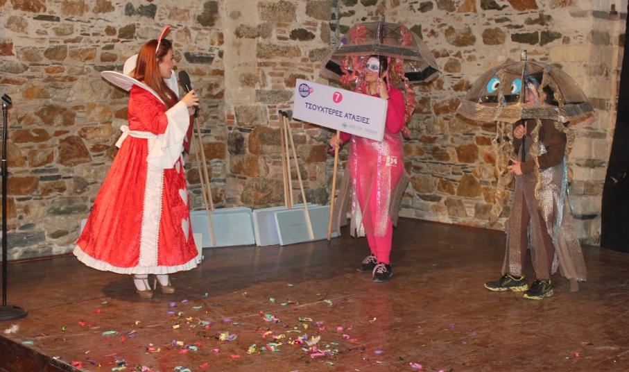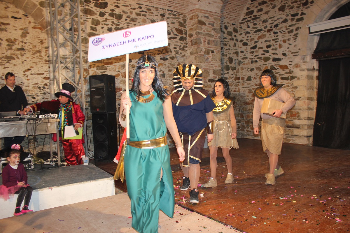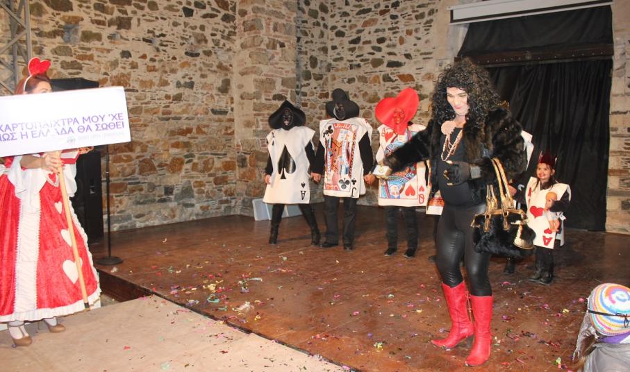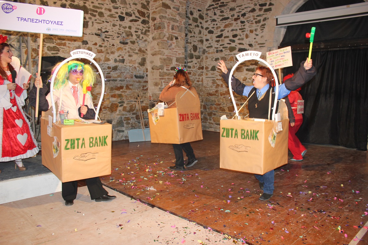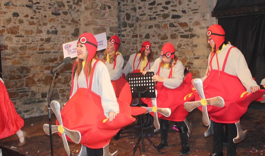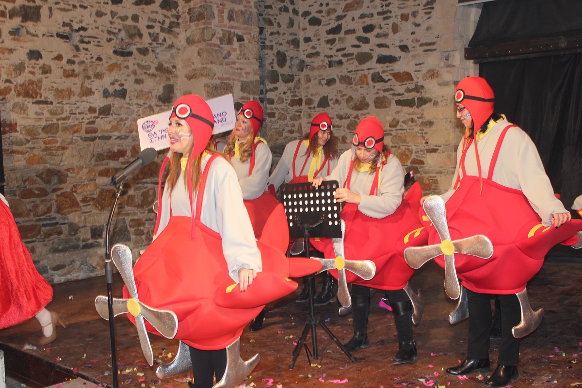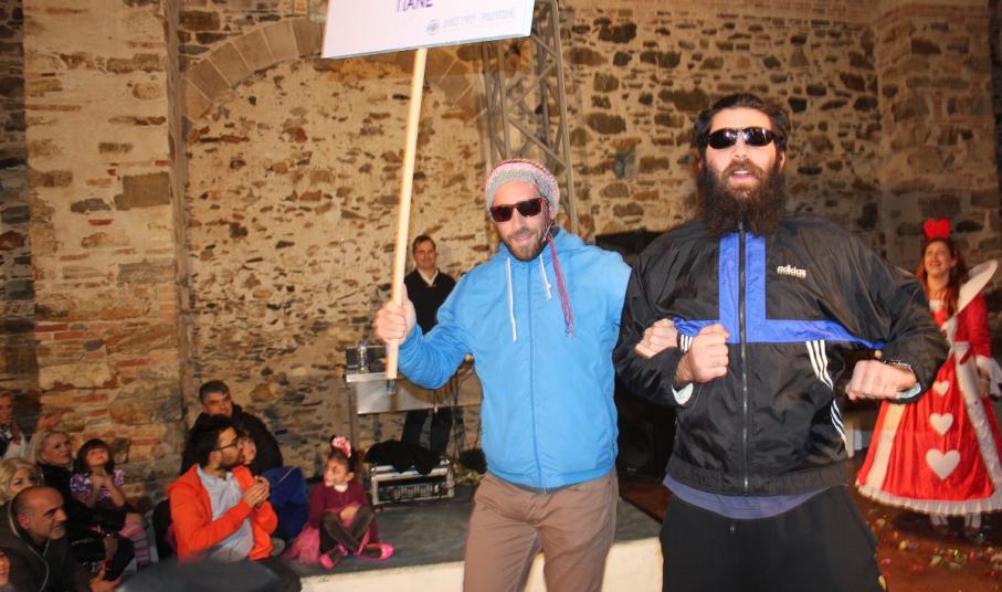 Με τη διάθεση ανεβασμένη στα ύψη, εκπρόσωποι των 18 ομάδων που λαμβάνουν μέρος στις καρναβαλικές παρελάσεις της Άνω Σύρου και της Ερμούπολης συστήθηκαν στο κοινό με τη βοήθεια των παρουσιαστών, Γιώργου Ρούσσου (λέμε και Καπελά) και Μαριάννας Βακονδίου (λέγε με και Κόκκινη Βασίλισσα) οι οποίοι με το κέφι, τον αυθορμητισμό και τις έξυπνες ατάκες τους απογείωσαν τη βραδιά.