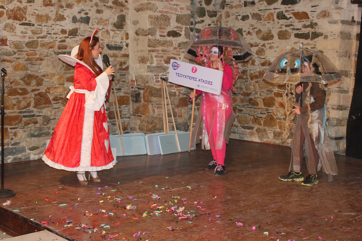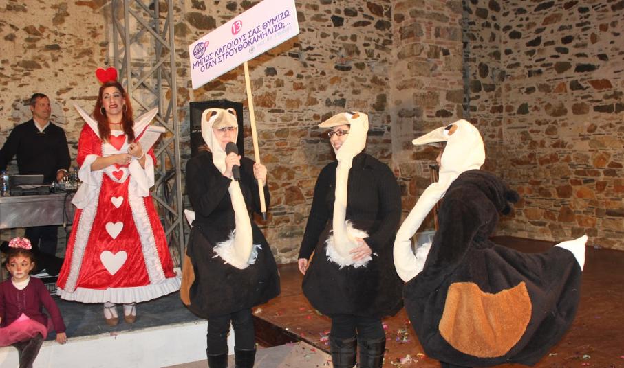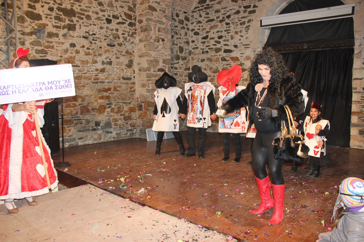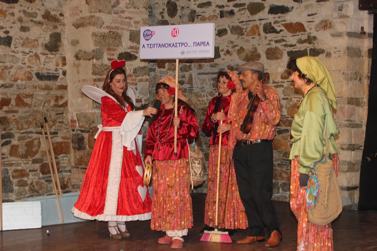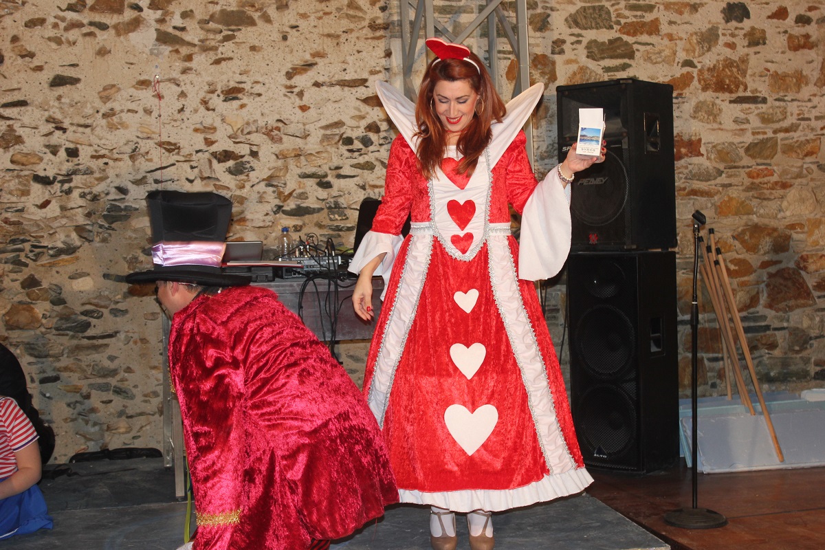 Με τη διάθεση ανεβασμένη στα ύψη, εκπρόσωποι των 18 ομάδων που λαμβάνουν μέρος στις καρναβαλικές παρελάσεις της Άνω Σύρου και της Ερμούπολης συστήθηκαν στο κοινό με τη βοήθεια των παρουσιαστών, Γιώργου Ρούσσου (λέμε και Καπελά) και Μαριάννας Βακονδίου (λέγε με και Κόκκινη Βασίλισσα) οι οποίοι με το κέφι, τον αυθορμητισμό και τις έξυπνες ατάκες τους απογείωσαν τη βραδιά.