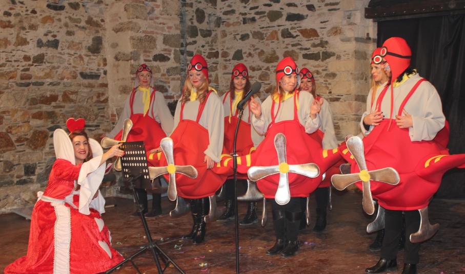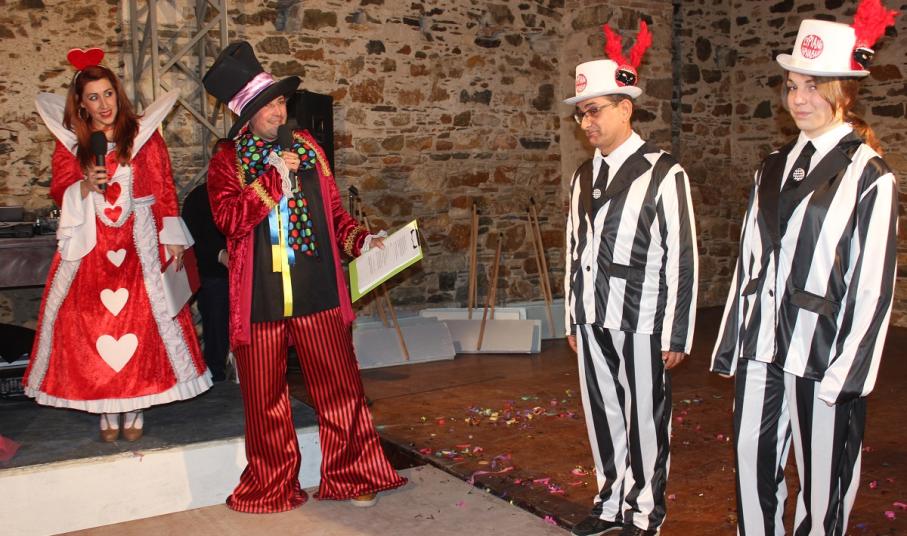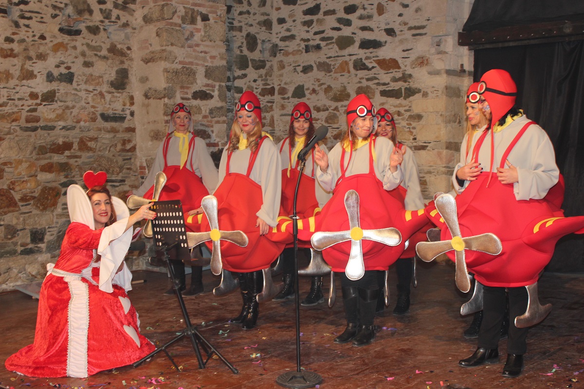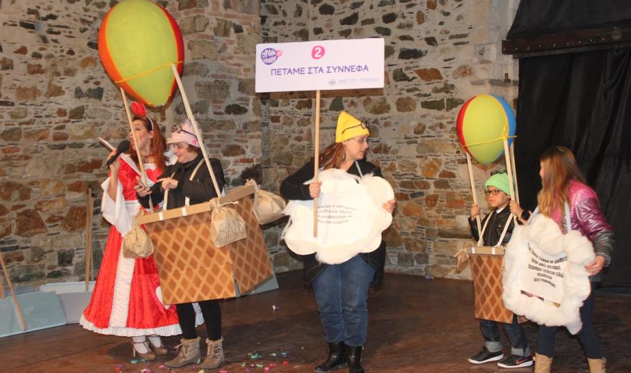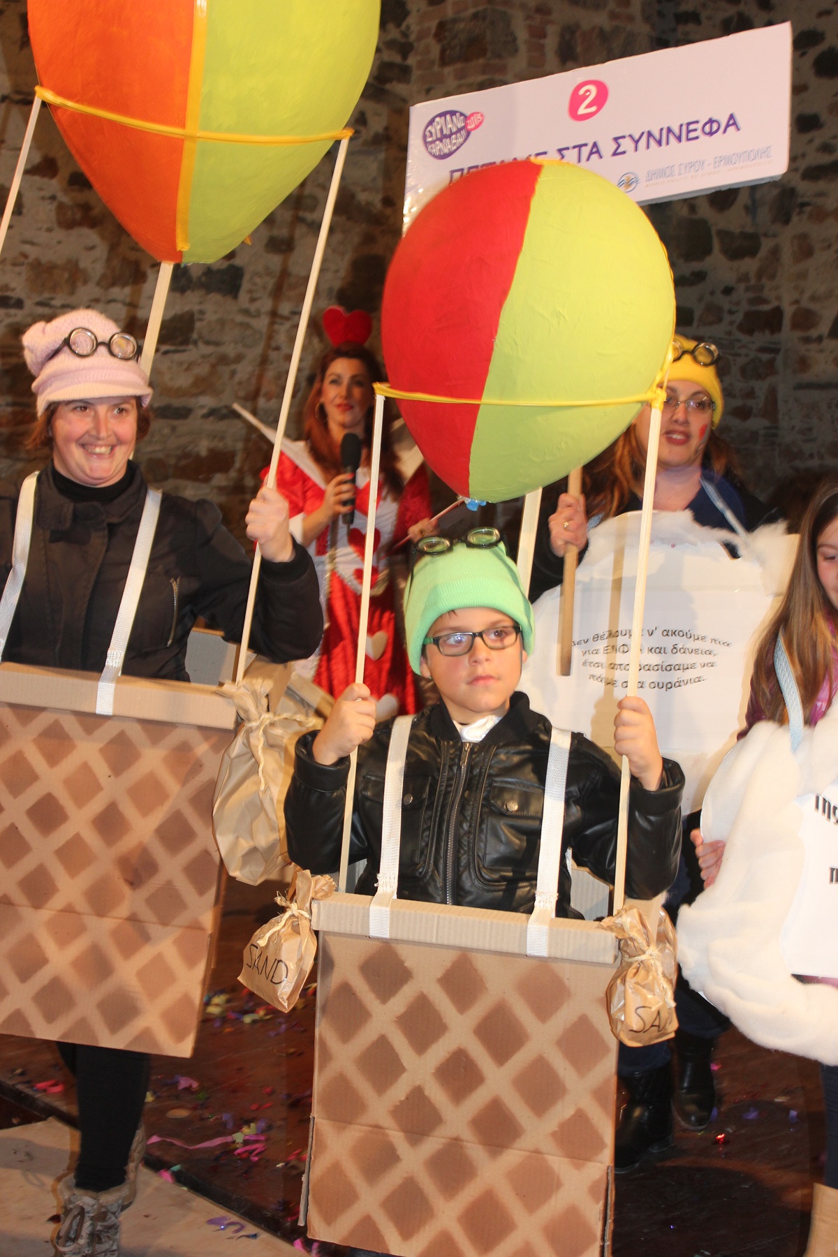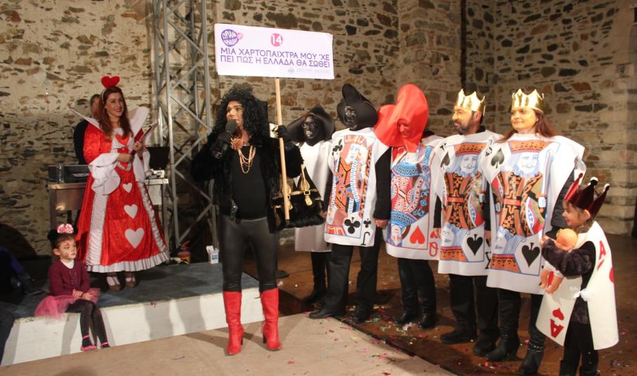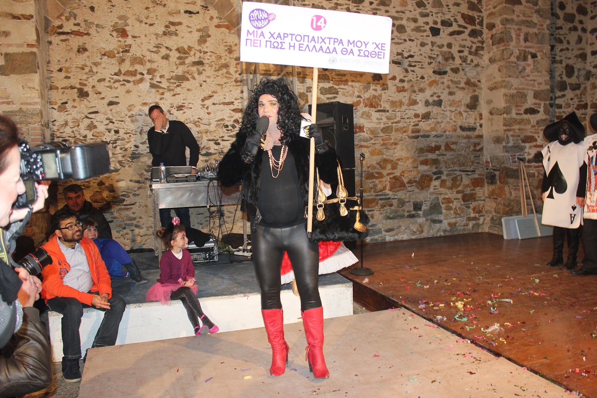 Με τη διάθεση ανεβασμένη στα ύψη, εκπρόσωποι των 18 ομάδων που λαμβάνουν μέρος στις καρναβαλικές παρελάσεις της Άνω Σύρου και της Ερμούπολης συστήθηκαν στο κοινό με τη βοήθεια των παρουσιαστών, Γιώργου Ρούσσου (λέμε και Καπελά) και Μαριάννας Βακονδίου (λέγε με και Κόκκινη Βασίλισσα) οι οποίοι με το κέφι, τον αυθορμητισμό και τις έξυπνες ατάκες τους απογείωσαν τη βραδιά.