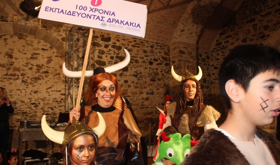 Υδροπλάνα, αερόστατα, δράκοι, τσούχτρες, στρουθοκάμηλοι, λουκουμάκια, Ινδιάνοι, Αιγύπτιοι, τσιγγάνες, αιμοσταγείς τραπεζίτες, χαρτορίχτρες, ήρωες της Ντίσνευ και πολλές ακόμη προσωπικότητες, κατέκλυσαν χθες το βράδυ την Πινακοθήκη Κυκλάδων στην παρουσίαση των αποκριάτικων στολών, τις οποίες θα θαυμάσουμε σήμερα και αύριο στο 5ο Συριανό Καρναβάλι.