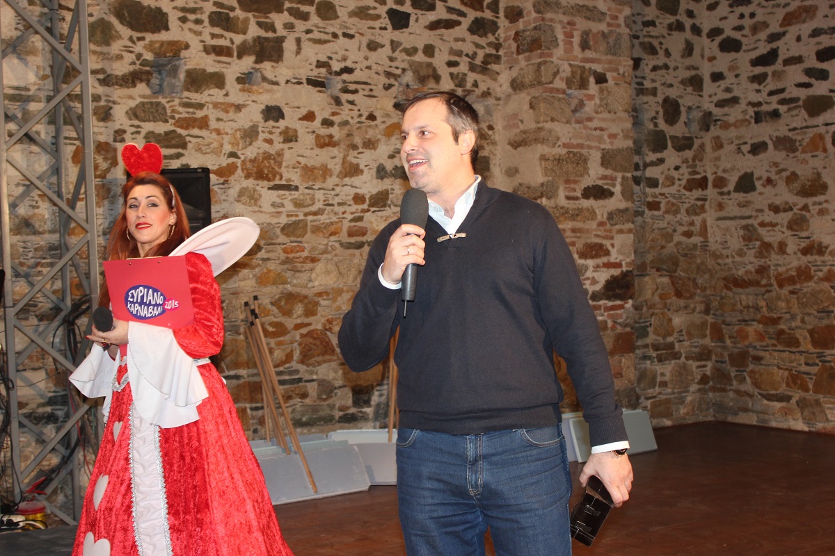 Τις ομάδες και τους φίλους του Συριανού Καρναβαλιού καλωσόρισε ο Αντιδήμαρχος Πολιτισμού, Θάνος Φώσκολος ο οποίος, μεταξύ άλλων, εκτέλεσε και χρέη μουσική παραγωγού, αναλαμβάνοντας τη μουσική επένδυση των παρουσιάσεων.