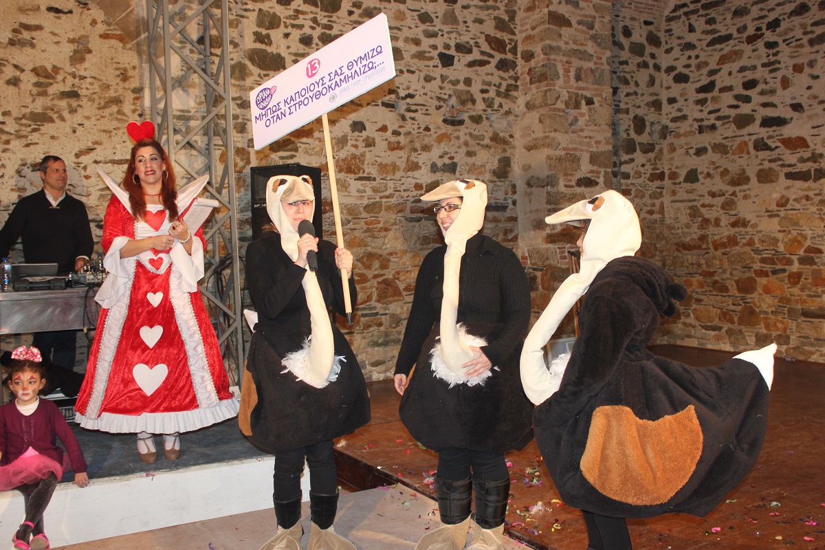 Αμέσως μετά, ανέβηκαν στη σκηνή οι εκπρόσωποι των 18 καρναβαλικών ομάδων, οι οποίες εκτός από τις στολές τους, παρουσίασαν θεατρικά και μουσικοχορευτικά δρώμενα τα οποία κέρδισαν το θερμό χειροκρότημα του κοινού.