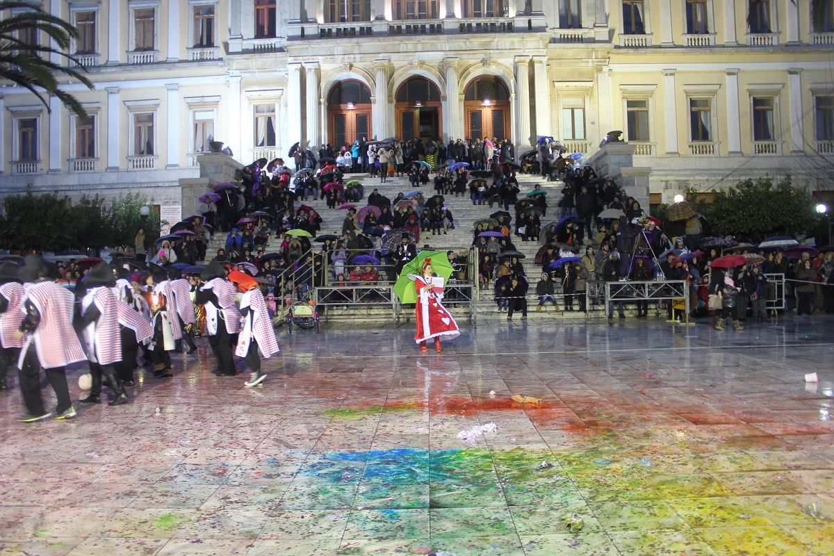 Ούτε το κρύο, ούτε η βροχή κατάφερε να πτοήσει το ηθικό των καρναβαλιστών της Σύρου, οι οποίοι όχι μόνο δεν έχασαν το κέφι τους, αλλά φόρτσαραν ακόμη περισσότερο, προκειμένου το 5ο Συριανό Καρναβάλι να μείνει στην ιστορία ως το πιο διασκεδαστικό και επιτυχημένο καρναβάλι των τελευταίων ετών, που δεν το έσκιαξε φοβέρα καμιά.