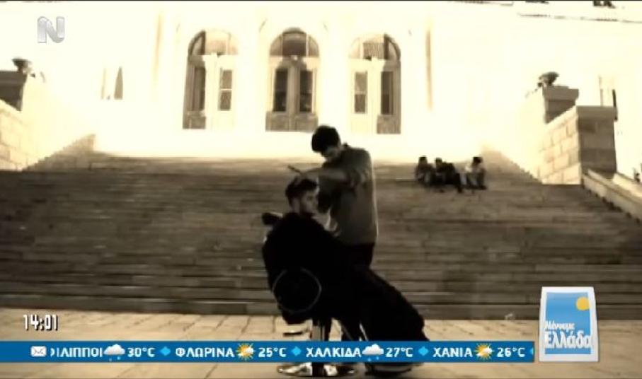 Τα υπαίθρια κουρέματα και ξυρίσματα του Άγγελου Βαρθαλίτη έχουν καταφέρει τον τελευταίο καιρό να κάνουν τον γύρο των social media, χάρη στην όρεξη, αλλά και την αστείρευτη έμπνευση τόσο του ίδιου, όσο και των συνεργατών-φίλων του που τον πλαισιώνουν.