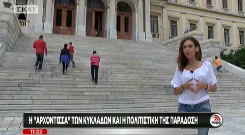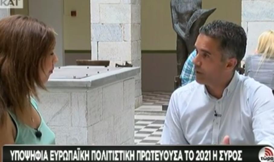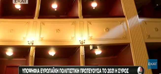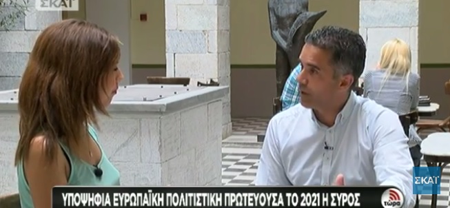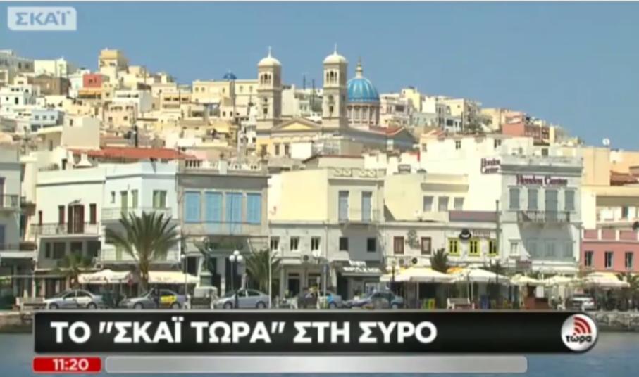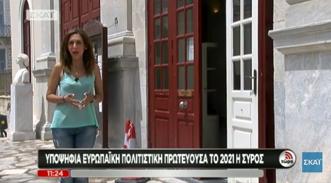 Στο εκτενές ρεπορτάζ που παρουσιάστηκε σήμερα στην πρωινή εκπομπή του ΣΚΑΙ με παρουσιάστρια την Άννα Μπουσδούκου προβλήθηκαν οι ομορφιές της πρωτεύουσας των Κυκλάδων με πλάνα από την Ερμούπολη, την Άνω Σύρο και άλλα σημεία του νησιού. Από την πλευρά του, Δήμαρχος Σύρου – Ερμούπολης αναφέρθηκε στην υποψηφιότητα της Σύρου για τον τίτλο της Πολιτιστικής Πρωτεύουσας της Ευρώπης το 2021 και στη διεξαγωγή του 2ου Ημιμαραθωνίου Σύρου την προσεχή Κυριακή με τη συμμετοχή 600 περίπου αθλητών. Στη συνάντησή του με τη δημοσιογράφο Μαρία Βούσουλα, ο κ. Μαραγκός εξήγησε τους λόγους για τους οποίους η Σύρος έθεσε υποψηφιότητα για Ευρωπαϊκή πολιτιστική πρωτεύουσα.
