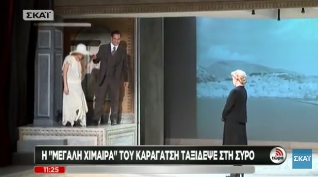 Στο εντυπωσιακό Δημαρχιακό Μέγαρο της Σύρου, το εμβληματικό Θέατρο Απόλλων και σε πολλές ακόμη μαγευτικές γωνιές του νησιού, η αρχοντιά του οποίου παραμένει αναλλοίωτη στον χρόνο, περιπλανήθηκε η κάμερα της εκπομπής “Τώρα – ΣΚΑΙ”, με αφορμή την παρουσίαση της θεατρικής παράστασης “Μεγάλη Χίμαιρα” στον τόπο έμπνευσης του συγγραφέα της, Μ. Καραγάτση.