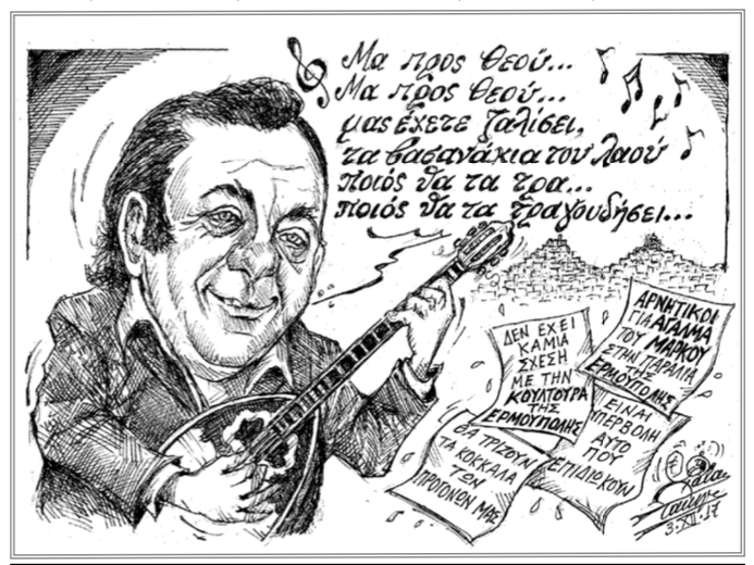 Σκίτσο του Τάκη Χάλαρη με θέμα: «Γ. Ζαμπέτας - Η κουλτούρα»