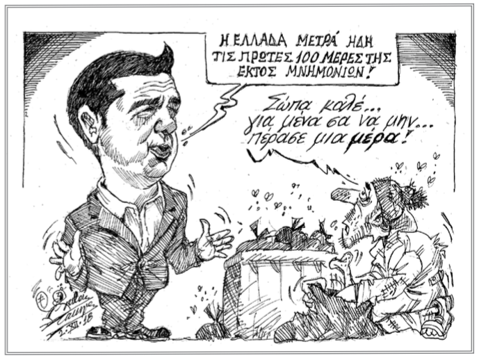 Σκίτσο του Τάκη Χάλαρη με θέμα: "Εκτός μνημονίων"