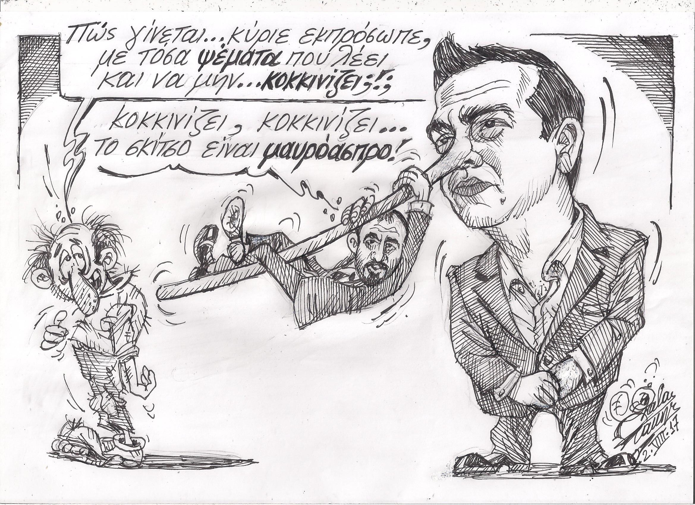 Σκίτσο του Τάκη Χάλαρη με θέμα: "Κοκκινίζει"
